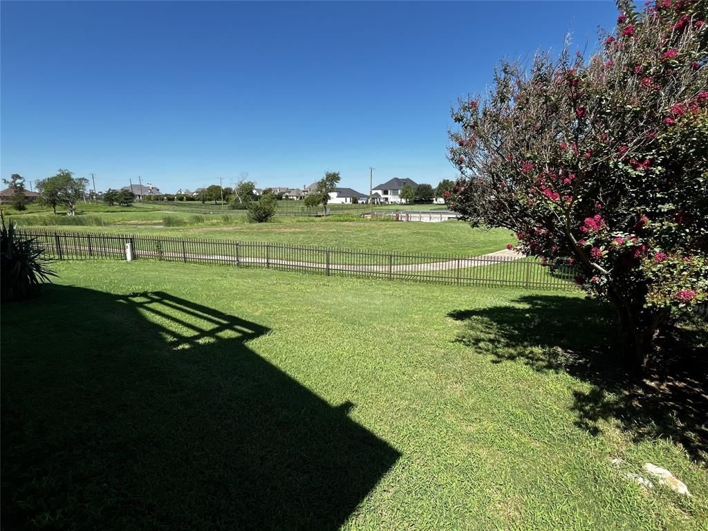 This beautifully designed custom home evokes timeless elegance and a relaxed, entertaining-inspired lifestyle. Graceful arches add character and grandeur while enhancing air circulation. The open-concept layout flows effortlessly, featuring a cozy fireplace, a well-appointed kitchen, and a spacious primary suite with an en-suite bath and an expansive walk-in closet. Stucco exterior and exposed wood beams frame the outdoor patio, offering a picturesque view of the adjoining greenbelt. Thoughtfully crafted for comfort and style, this home provides enduring appeal with a modern feel.