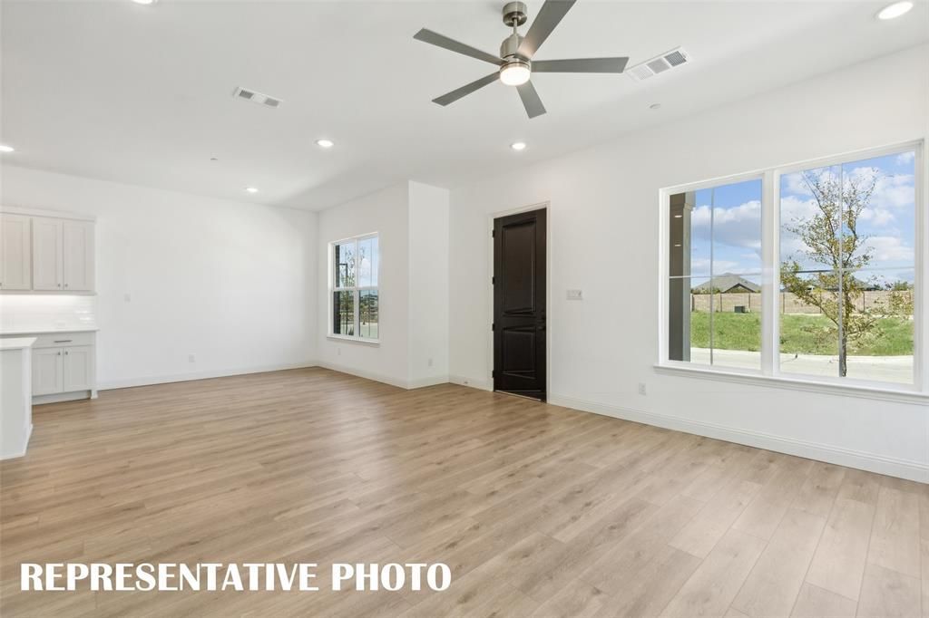 CB JENI HOMES MARTIN floor plan. 2,668 sq ft, 4 bed, 3.5 bath luxury townhome on a CORNER homesite featuring a huge covered front porch—perfect for a dreamy porch swing. This home boasts 10-ft ceilings on the first floor and the owner’s suite downstairs with tray ceiling finish, spacious bedroom, walk-in closet, and spa-like bathroom with oversized shower and dual sinks. Abundant windows flood the home with natural light, ideal for entertaining. Chef’s gourmet kitchen opens to the dining and family rooms and includes a large island, pantry, quartz countertops, site-finished cabinetry with hardware included, under-cabinet lighting, stainless steel appliances, pot and pan drawers, and 5-burner gas cooktop. Upstairs offers three large secondary bedrooms with walk-in closets, including one en suite, a huge game room, and a media room. Located in Twin Creeks Watters, in the heart of exemplary schools, dining, shopping, lakes, parks, and acclaimed golf courses. Enjoy low-maintenance living with modern elegance. Ready JULY-AUGUST 2026!