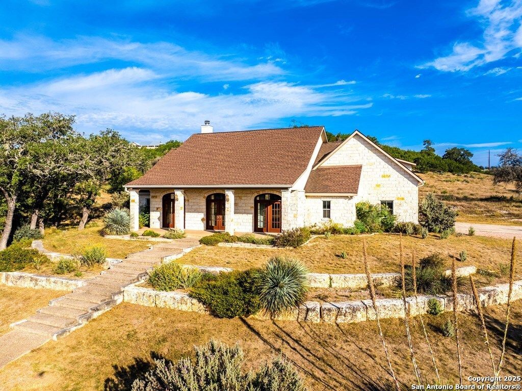 Custom Hill Country Retreat in Cypress Springs Estates. Nestled in the rolling Hills of the Texas Hill Country, custom 4-bedroom, 3.5-bath home offers sweeping views within the gated community. Thoughtfully designed with comfort & elegance in mind, this property is truly a must-see. Step inside to an open floor plan anchored by a limestone fireplace, where natural light fills the living spaces. The chefs kitchen flows seamlessly into the dining and living areas, perfect for both quiet evenings and grand entertaining. The primary suite features a spa-inspired bath with a walk-in shower and a soaking tub overlooking your private butterfly garden-a serene retreat at the end of the day. Additional highlights include: 3+ car garage with storage space, Epoxied porches for durability and style. Storage plentiful. Private upstairs guest suite with ensuite bath . Enjoy the outdoors from your high-fenced backyard, or take advantage of the communitys resort-style amenities: a swimming pool with pavilion, short-term RV spots for visiting guests, and access to the exclusive River Park across hwy39. This property combines luxury, privacy, & community living in one perfect package.