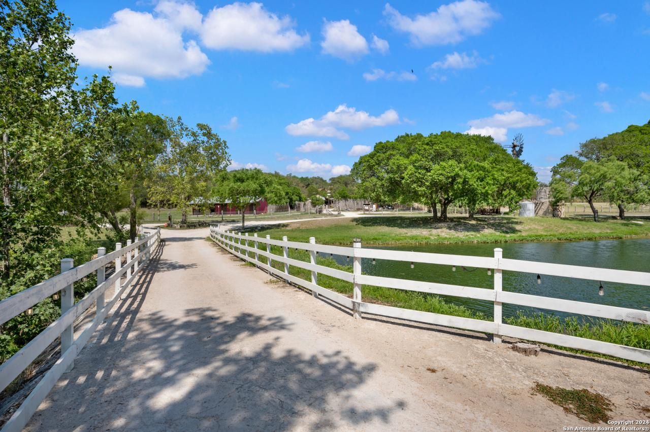 The Don Strange Ranch offers a unique opportunity to acquire a historic piece of the Texas Hill Country with two homes and established, profitable event/venue facilities. The property is 81.3 acres and located just 9 miles from downtown Boerne, 39 miles from downtown San Antonio, and 35 miles from Fredericksburg. Offering over 1400 feet of paved road access off the Waring Welfare Road, the gently rolling topography consists of open fields, mature oak and pecan trees, as well as live water. A truly picturesque locale, this acreage also contains established herds of axis, white tail and turkey for the outdoor enthusiasts. The historic "Headquarters House" was built in 1868 and is approx. 2,500 square feet with 2 bedrooms and 2.5 baths. The "Headquarters House" overlooks Zinc Creek (which flows through the property), a half-acre lake, plus majestic oak and pecan trees. The guest casita, which was built in 2019, is approx. 1,000 square feet with 2 bedrooms and 1 bath and is surrounded by live oaks. Owners may also enjoy beautiful views of the property from the covered front porch. There is ample room for additional casitas to be built to create a Bed and Breakfast or Short-Term Rental Community. The property also has two stunning event pavilions, the Headquarters Pavilion and the Kendall Creek Pavilion. The Headquarters Pavilion is approx. 5,000 square feet with 3,000-person capacity, stage for live music, and area for industrial kitchen. The Kendall Creek Pavilion is approx. 4,000 square feet with a 300-person capacity. The spring-fed Zinc Creek flows through the property offering live water views and ends with a half-acre lake. In addition, the property has a ropes course and is a popular venue for sporting events as well as a drive-through Christmas Lights destination. There are separate septic systems for the homes and event pavilions as well as 3 wells on the ranch. The history of the property dates to the mid-1800s when German Prince Carl of Solms-Braunfels came over to establish a presence on Texas land. Developed by Nicolaus Zink, a Bavarian-born civil engineer, in 1868, this ranch is an important piece of Texas history. Zink was a crucial part of the Germans success in the Hill Country by respecting Comanche territory and successfully navigating unrest, disease, and financial difficulties. He eventually became responsible for about half of the German immigrants in the Hill Country. Following the initial development of this ranch by Zink, Don Strange and his family further developed and beautifully maintained this piece of history beginning in 1952. It has since earned an exceptional reputation statewide for providing impeccable service, hosting fabulous events, concerts and providing world-class entertainment. From small, private events to large gatherings welcoming thousands, this fantastic venue is great for celebrating weddings, corporate and sports events.