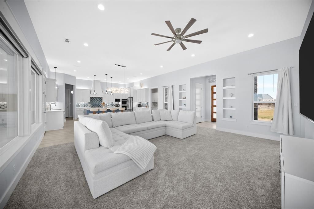 Your private backyard oasis awaits! This custom-built home, located outside city limits with NO HOA and NO deed restrictions, offers the perfect blend of comfort, functionality, and resort-style living. The open-concept floor plan features 3 very spacious bedrooms, plus an office or make it a bonus bedroom, the attic space is massive and could also be used as a loft or a man cave, 2.5 bathrooms, plus a game room complete with a granite bar top ,half bath, ice maker, and refrigerator space — ideal for entertaining. The chef’s kitchen showcases abundant cabinetry, an oversized island, stainless steel appliances, Thor propane cooktop, double ovens, and a large walk-in pantry. The primary suite is a true retreat, featuring a spa-style walk-in shower with dual body sprayers and rain head, plus a large walk-in closet with built-ins, shelving, and triple hanging rods. Step outside to your personal resort featuring a 40 x 21.5 heated gunite pool with tanning ledge, bubblers, umbrella holders, three sheer descents, and color-changing lights. Enjoy the 8 x 8 hot tub under roof with multi-seat massage options and color-changing lighting. Outdoor amenities include stamped concrete decking, outdoor shower, 13 x 30 uncovered patio, 17 x 30 covered porch with propane starter wood-burning fireplace, propane grill hookup, and hot-cold water spigot. Additional highlights: foam insulation, whole-house generator, abundant attic decking, stocked pond for fishing, landscaped acreage with large backyard grass, pasture space, sprinkler system, tank-pond, water-lake view, outbuilding and shed(s), aerobic septic system. This one-of-a-kind property offers luxury amenities with the freedom of country living. Call to Schedule your private showing TODAY!