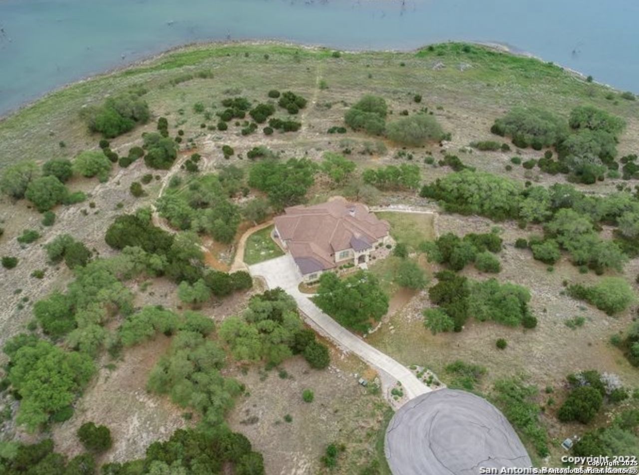 Presenting an exquisite 2.98-acre luxury estate on the waterfront, located in the highly sought-after gated community of Cordova Bend. With 513 feet of private Guadalupe River shoreline along Canyon Lake, this home offers the perfect combination of refined living and natural Hill Country beauty. Crafted by renowned builder Jimmy Jacobs, this single-story residence includes 3 generously sized bedrooms and 3 meticulously designed bathrooms. The spacious living area features a grand floor-to-ceiling stone fireplace and stunning wood floors, creating an atmosphere of warmth and sophistication. Large windows and a multi-room audio system throughout the home flood the space with light and ambiance. Enjoy sweeping views of Canyon Lake and the surrounding landscape. The open-concept layout seamlessly incorporates custom built-in wood shelving, enhancing both form and function. The gourmet kitchen, equipped with high-end appliances, custom cabinetry, and extensive counter space, is a dream for any chef. Just off the kitchen is a cutting-edge media room with a wet bar and expansive views, making it perfect for entertaining. The home also includes a quiet, private office offering an ideal work-from-home environment. The primary suite is a true retreat, with tray ceilings and a luxurious en suite bathroom featuring an expansive walk-through shower. The additional bedrooms are designed for both privacy and comfort, offering ample space for family and guests. Outside, the gently sloping grounds lead down to the water, where a charming lakeside fire-pit and a tree swing provide the perfect spot to enjoy tranquil evenings. Wildlife can often be seen roaming the property and the lake creates a stunning natural backdrop. This custom estate offers a perfect blend of rustic charm and modern luxury, making it ideal for those seeking a premier waterfront lifestyle in the Hill Country. This home invites both relaxation and adventure in a truly one-of-a-kind setting.