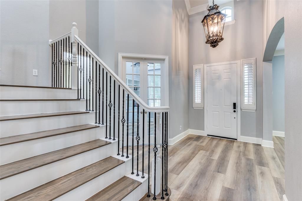 This beautiful spacious 2-story home offers 5 bedrooms and 4.5 baths in Frisco's highly sought after neighborhood of Eldorado Fairways At The Trail. Designed for both comfort and entertaining, this home features multiple living and dining areas, a game room, and a media room pre-wired for 11-speaker Dolby Atmos. The chef’s kitchen overlooks the living area and is equipped with quartz countertops and backsplash (2023), a professional-grade stove and vent, and KitchenAid appliances (2022) all centered around a large island and a bonus butler’s pantry.Downstairs, enjoy a private primary suite with bay window sitting area, a guest bedroom with full bath, and a study with custom built-ins. Upstairs offers two bedrooms with a Jack & Jill bath, plus a fifth bedroom with its own en-suite. Updates include 9-ft wide luxury vinyl plank flooring on the first floor (2022), a new roof (2022), and modern finishes throughout. Ideally located just minutes from shopping, dining, the lake, Stonebriar Mall, top-rated schools and major highways Dallas North Tollway and HWY 121. Walk to nearby parks, playgrounds, and community amenities. This home is the perfect blend of style, space, and location.