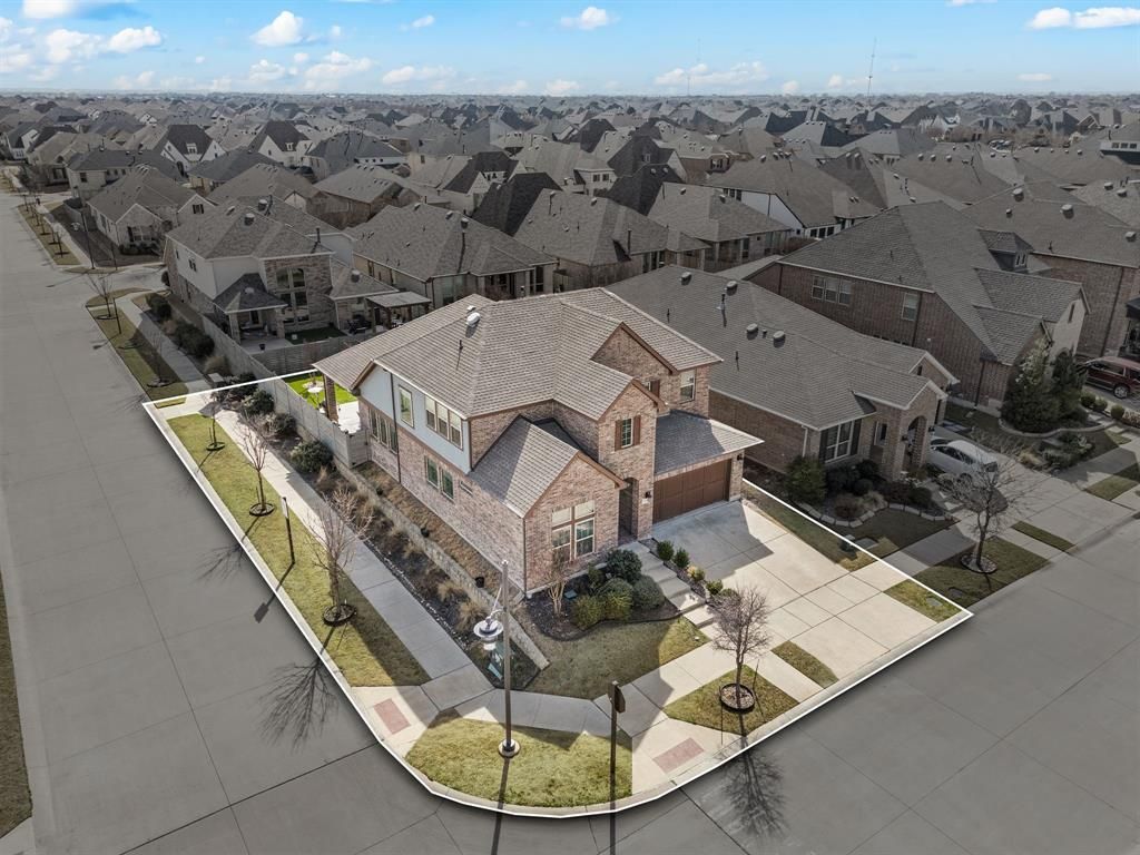 Welcome to the perfect blend of luxury, functionality, and location in the heart of Argyle. Ideally situated directly across the street from the elementary school, this home offers unmatched convenience for morning drop-offs, school events, and easy daily living! Step inside to discover soaring ceilings, abundant natural light, a designated office, and thoughtfully designed open-concept floorplan. The spacious living room features expansive windows, a cozy fireplace with modern tile surround, and seamless flow into the chef’s kitchen. The kitchen is beautifully appointed with crisp white cabinetry, stainless steel appliances, a large island with seating, subway tile backsplash, designer pendant lighting, and generous storage throughout. The private primary suite is complete with a bay window sitting area, plush carpeting, and a spa-inspired ensuite bath featuring dual sinks, a soaking tub, walk-in shower, and a spacious walk-in closet. Upstairs, enjoy additional living space perfect for a game room, media room, or playroom. Step outside to one of this home’s standout features — a low-maintenance turf backyard designed for year-round enjoyment. Practice your short game on the custom putting green, host gatherings under the covered patio with string lighting, or watch the kids enjoy the playset in a space built for fun and relaxation. The artificial turf ensures a lush green lawn without the upkeep. With its beautiful curb appeal, modern finishes, functional layout, and unbeatable location in sought-after Argyle ISD, this home truly checks every box. Schedule your showing today!