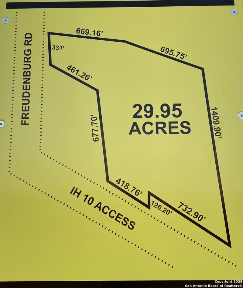 BUY ALL OR PART. of this 28.38-acre (Ag Exempt) farmland features 419 feet of Interstate-10 highway frontage and 181 feet of road frontage on Freudenburg Rd, offering incredible potential for development. The cleared land is ideal for various uses, including a retail strip, movie theater, industrial park, auto auction site, trucking yard, new car dealership, oil field facility, Truck Stop, residential construction, indoor storage, or open-air boat and RV storage. Located just outside Loop 1604 near San Antonio and Converse, the property is in a rapidly growing area with new home subdivisions but limited shopping, dining, and entertainment options. A large D.R. Horton community is being built nearby, adding to the areas appeal. Conveniently situated on Toll Road 130 to Austin and Houston, utilities are available at the street, though a septic system is currently required. This is a rare opportunity to develop in a booming location with endless possibilities.