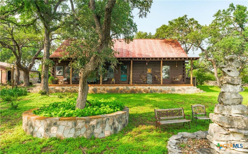 Extraordinary 24-acre hill country hideaway just minutes from both Wimberley & San Marcos, balancing seclusion with accessibility to Austin & San Antonio. This property is highlighted by a stunning, hand-built 2,300 sqft log cabin offering unparalleled privacy. Inside, vaulted ceilings soar over a rustic yet elegant interior adorned with cowboy & Native American-inspired decor. The kitchen is a masterpiece with a mosaic tile backsplash, striking light granite countertops, custom detailed cabinets, a gas range, & a gourmet stainless steel sink. Three fireplaces, including two stone hearths in the dining & living areas & a wood-burning stove in the primary bedroom, create cozy retreats throughout. The primary bathroom features a sculptural walk-in shower, while the second bathroom boasts a soaking tub accented with captivating mosaic tiles. Step outside onto the expansive veranda overlooking a flourishing koi pond, stone patio, & an enchanting cabana. At the heart of the estate lies a meticulously crafted stone chapel, a masterpiece of hand-built artistry. This open-air sanctuary, capable of seating 80 guests, is an idyllic setting for weddings, concerts, & other memorable events. Outdoor living spaces beckon with a standalone pool for relaxation, outdoor kitchen complete with stone grill & expansive fire pit, & raised stage perfect for live performances, echoing the spirit of cosmic cowboys like Kris Kristofferson who once frequented the area. Additional amenities: barn with stables & a corral for horses, grandiose stone rabbit house. Easy access to Ranch Road 12 & close to downtown Wimberley, Hill Country Studios, Jacobs Well, & other local attractions. This versatile property has served as both a profitable short-term rental & a beloved homestead, meticulously maintained by its current owner. Offering luxury, rustic charm, & artistic beauty, with endless possibilities as a private retreat, income-generating rental, or event venue.