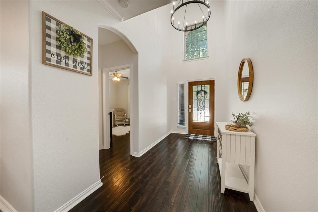Welcome to luxury living in the gated community of The Shores at Hidden Cove, just minutes from Lake Lewisville and Hidden Cove Marina. Enjoy boating, fishing, lakeside dining, and the ultimate resort lifestyle right outside your neighborhood.Step inside to soaring ceilings, abundant natural light, and a light-filled open concept layout that feels both elegant and inviting. This meticulously maintained home is truly move-in ready. The main level features a private guest suite with ensuite bath, ideal for long-term guests or multigenerational living. A formal dining space flows into the chef-inspired kitchen complete with granite countertops, ample cabinetry, and an oversized island that opens seamlessly to the spacious living area. Anchored by a cozy gas fireplace, this is the perfect space for entertaining or relaxing at home.The primary retreat offers privacy and comfort with a spa-like bath featuring a glass-enclosed shower, soaking tub, dual vanities, and a large walk-in closet. Upstairs, enjoy a versatile game room along with two generously sized secondary bedrooms that provide flexibility for family, guests, or a home office.Step outside to a covered patio overlooking a great-sized backyard with plenty of room to entertain, play, or design your own outdoor oasis.HOA amenities include a community pool, playground, and easy walking access to the marina with a floating restaurant, campgrounds, and RV parking.Furniture is negotiable, offering a seamless transition for buyers if desired. Sellers prefer a leaseback through May, providing added flexibility for a smooth closing process.