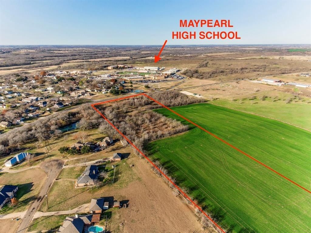 Located in the heart of Maypearl, this 10-acre lot offers the perfect blend of small-town charm and prime location AND 400 feet of road frontage off FM 157. Situated across the street from the high school and football stadium, and just minutes from downtown, this expansive property is brimming with potential. Whether you envision building your dream home, creating a private retreat, or exploring development opportunities, this lot delivers space, convenience, and endless possibilities. Don’t miss your chance to own a piece of Maypearl—this gem is the opportunity you've been waiting for!