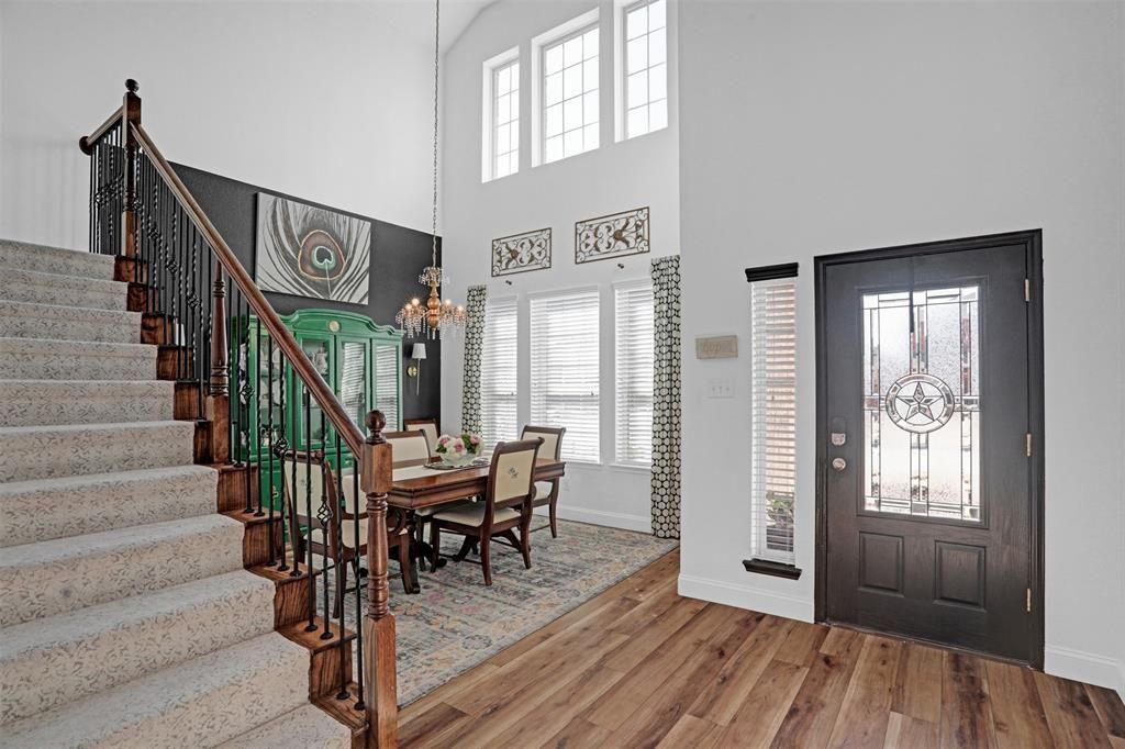 Modern elegance meets small-town charm in the Villages of Melissa! This gem features 5 beds, 3 baths, and 2 living areas. Enjoy amenity-rich living with a pool, park, pickleball, and putting green.The interior shines with fresh paint, LVP flooring, and upgraded lighting. The large kitchen boasts professionally painted cabinets, a 2023 dishwasher, and stainless galley sink. Relax in the living room by the redesigned gas fireplace with custom tile and mantle. The main floor offers a private primary suite plus a versatile 2nd bedroom—perfect for an office, guest room or its current use as a Speakeasy lounge. Upstairs, is a large living room and three additional bedrooms.Storage is a breeze with an expanded walk-in attic. Outside, enjoy pro landscaping, a 2024 stained fence, and soaker system for the garden. Bonus: Custom Christmas lights included and require installation.With yearly furnace maintenance and tasteful finishes throughout, this turn-key home is ready for you. Visit today and make it your own!Information provided is not guaranteed and should be independently verified. Buyer or Buyer's Agent to verify measurements, schools, & tax, etc. Please note video and or audio equipment by sellers may or may not be in use.