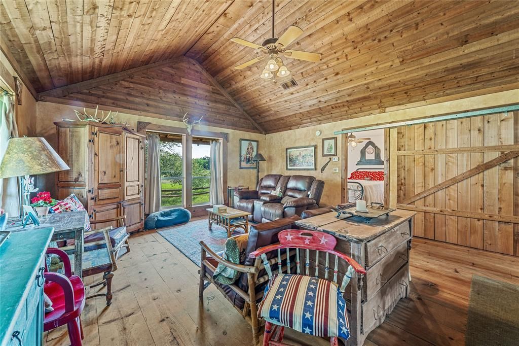 This adorable ranch house sit on 5 acres amongst a cascade of majestic Live Oak trees that fully shade the landscape. The 1,100 sq ft ranch house with a 6ft wrap around porch, gives you a spectacular view of the exotic wildlife, axes deer, whitetails, wild turkey an more. The home is decorated with a country and western charm throughout. An open concept pulls family and friends together. The kitchen and a sit down bar, dining area opens to the magnificent living room with large floor to ceiling windows giving you sunshine and spectacular views. The two bedrooms share a jack and jill bathroom, the utility room houses a full size washer, dryer, hot water heater and HVAC unit. There's couple of lofting sheds with electricity can be used for livestock, an additional storage metal building and a loafing or storage shed with a water facet near. All land owners have complete access to this amazing ranch which is over 1,025 acres Crossbow Ranch offers all the residents the feeling of owning a large ranch. Members own an undivided interest while owning acreage. Although this property isn't a hunting lot you and your family are able to use the amenities - all owners in Crossbow Ranch have access and use of and on 650 acres, a skeet, a 300-yard rifle range, 30 deer enclosed blinds are available to all owners, photographer just grab your camera for photo opt at the feeders, food plots, a walk-in cooler, golf driving range, ATV, hiking and horse riding trails. It's heavily wooded with vegetation supporting the wildlife, trophy whitetail, axis, red stag, turkey and dove. There are creeks that runs through the ranch filling multiple ponds. This home sits towards the back of the ranch, it's a peaceful, serene area that's within walking or ride your ATV, jeep or horses a short distance to the stocked pond for your fishing and eating pleasure. Bosque County known as Top of the Hill Country and you'll enjoy the views and camaraderie among your neighbors and friends here.