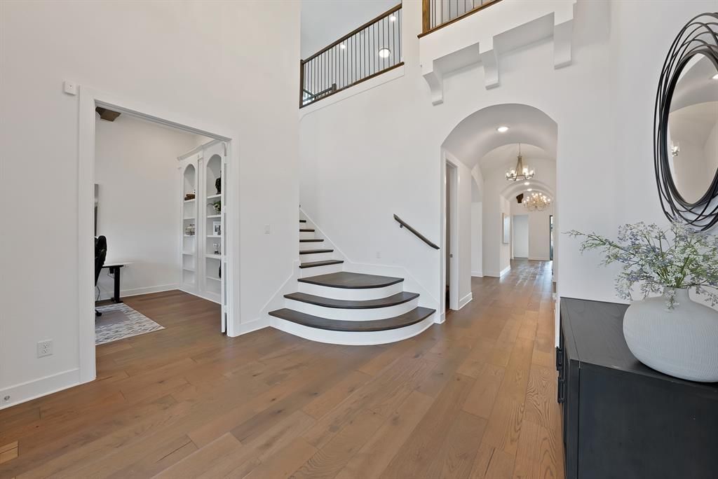 Welcome to this stunning Highland Home, Plan 673, located in the highly sought-after master-planned community of Star Trail and Prosper ISD! Situated on an expansive 86ft lot, this home combines elegant design, modern upgrades, & incredible community amenities. Step inside through impressive double entry doors & enjoy soaring ceilings, open floor plan, & designer finishes throughout. The home features 5 bedrooms, 5 full baths, & 2 half baths, along with a private study complete with beam details & hidden bookcase door. Entertain in style with a formal dining room, wine bar, & barrel ceilings. The primary retreat is a true sanctuary with barrel ceilings, a spa-like bathroom featuring a double vanity & a make-up counter, a stand-alone tub, walk-in shower, & an exquisite walk-in closet with custom built shelving floor to ceiling & a built in dresser. The open living room impresses with vaulted ceilings, exposed beams & a sleek fireplace with striking floor-to-ceiling tile. The chef's kitchen is a dream, boasting a gas range, double ovens, an oversized island & counter space, & a convenient nook office. Indoor Outdoor living shines with a large sliding glass door that opens to an extended covered patio with fireplace perfect for entertaining or relaxing. Upstairs offers a versatile retreat complete with a wet bar, sink, beverage fridge, microwave, bar top seating, a spacious living area, bedroom, and both a full and half bath- ideal for guests or multi-gen living. Additional highlights include a 3 car J-Swing garage & an oversized backyard with plenty of space play or enhancements. Residents enjoy resort-style amenities, sparkling pools, tennis,pickleball courts, playgrounds, lakes, & miles of tree-lined walking trails. Conveniently located near the DN Tollway and Hwy 380, you'll have easy access to shopping & dining at the Gates of Prosper, golf & entertainment at the PGA & the highly anticipated Universal Studios. This home truly blends luxury, comfort and lifestyle!