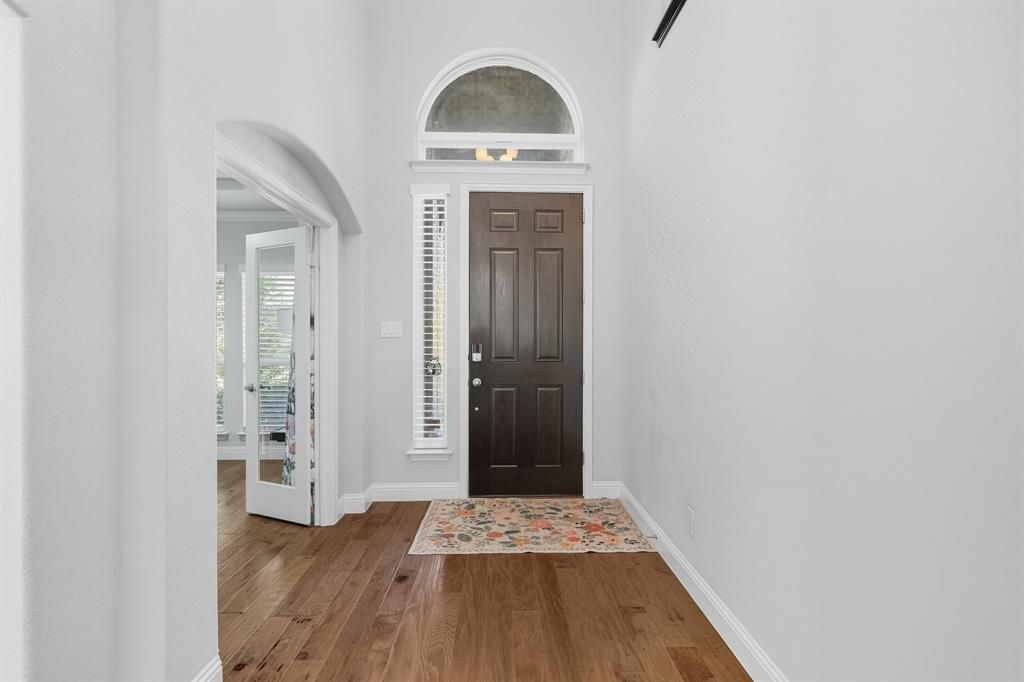 Discover your dream home in this stunning 4-bedroom, 3.5-bath residence featuring a 3-car garage, sparkling pool, and an outdoor kitchen—perfect for year-round entertaining. Backing to a peaceful greenbelt with direct access to scenic trails and a nearby park, this home offers the ideal blend of comfort, privacy, and outdoor living.Step inside to an open-concept layout filled with natural light, soaring ceilings, and thoughtful designer touches throughout. The gourmet kitchen flows into a spacious living area, making it perfect for gatherings and everyday living. Enjoy movie nights in the dedicated media room or customize the upstairs flex room as a game room, home office, or workout space.The well-planned layout includes a Jack and Jill bathroom between two secondary bedrooms, offering both convenience and privacy. The luxurious primary suite features a spa-inspired en-suite bath with dual vanities, soaking tub, walk-in shower, and generous closet space with direct access to pool and patio out back. Step outside to your own backyard oasis—complete with a covered patio, outdoor kitchen, and pool—all surrounded by mature trees and greenbelt views. With no rear neighbors, you'll enjoy peaceful evenings and private entertaining.Located near parks, trails, and top amenities, this home truly has it all—space, style, and the perfect setting.