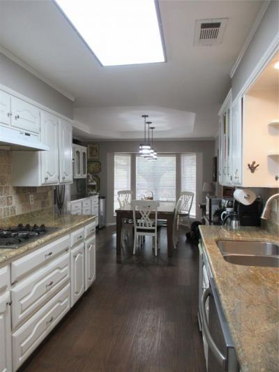Welcome to this unique 4 bedroom, 3 bath home that is ready for you to enjoy. Seller has really done a lot of beautiful renovations including Hickory Hardwoods in the kitchen and living area. A new bedroom with an on-suite has a large, tiled walk-in shower. Also included is a spacious living area with laminate flooring that opens to the back yard. The other two guest bedrooms use the hall bathroom with a tiled tub shower combination. These bedrooms also have new carpet and two closets. The Primary Bedroom has an on-suite with walk-in Tiled shower and a vanity with marble counter. The floor is tiled and there is open storage for towels. The kitchen with breakfast area is a cook's paradise. Seller has installed a beautiful counter with stainless steel top and lots of cabinets for storage in the breakfast area. The kitchen counters are marble and stainless steel. Kitchen includes a gas cook top, built-in oven, broiler, trash compactor, a new Media dishwasher, a divided stainless steel sink with new garbage disposal. Above the breakfast table are new modern light fixtures. Breakfast area also looks out to the back yard thru a 3 part bay window. Kitchen also includes a pantry. The laundry room is off of the kitchen behind a lovely door with glass insert. The spacious den has a vaulted, beamed ceiling. Very cozy with the large fireplace with heavy wooden mantel. Fireplace is either wood burning or gas logs. All rooms have ceiling fan light combos. Most fans are Hunter 60 fans. One other room is the office dedicated to the owner's trophies. He is very talented and has trophies to honor his endevors. The 2 car garage has 2 automatic openers and storage with shelves attached. The steel 22 gauge roof is approximately 3 years old, AC units are newer. The backyard is ideal for entertaining under the large Live Oak tree. A storage building work shop is also included. There is nothing to do but bring your suitcase and move in. Seller just reduced to $285,000!