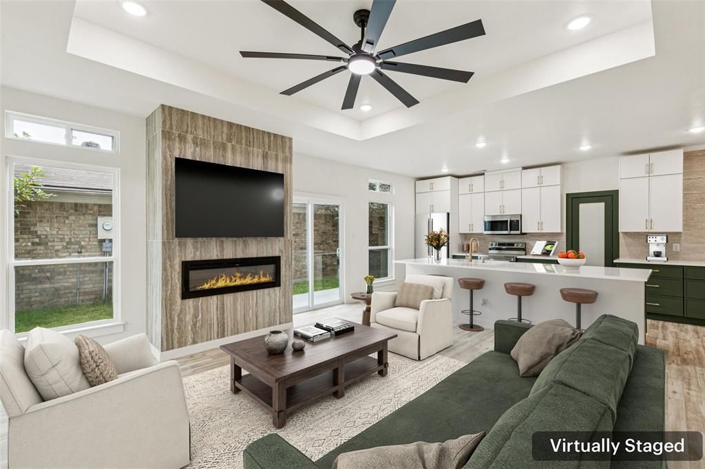 BRAND NEW CONSTRUCTION in an established neighborhood with no HOA, this beautiful home combines **MODERN DESIGN** with timeless comfort, offering a spacious **OPEN FLOOR PLAN** perfect for today’s lifestyle. Enter to a welcoming living room featuring a stately **FIREPLACE**, elegant tiered ceiling, and a wall of windows that fill the space with **NATURAL LIGHT**. The modern kitchen is a showstopper with abundant storage, a huge **WALK-IN PANTRY**, a large island with seating area, and stylish designer touches that make it both functional and stunning. The serene primary suite provides a relaxing retreat with a **LUXURIOUS ENSUITE BATH** and a generous walk-in closet. Spacious secondary bedrooms offer comfort and flexibility for guests, or hobbies, and the well-appointed secondary bath complements the thoughtful layout. French doors lead to a **DEDICATED HOME OFFCE**, perfect for working or studying in peace. Enjoy privacy in the **FENCED BACKYARD**, ideal for entertaining or quiet evenings outdoors. The gated rear entry provides convenient access to the two-car garage from the alley. Situated in a prime location, this home offers the best of both worlds — the charm of an established neighborhood with the benefits of brand-new construction. Move-in ready and built for modern living, this one is a must-see! 3D tour available online! **CALL AGENT FOR PREFERRED FINANCING DETAILS**
