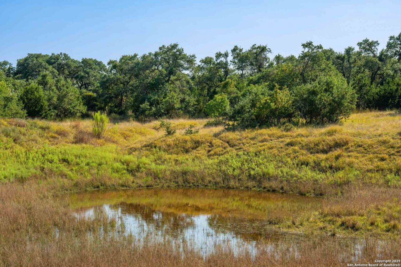 Exceptionally beautiful and well-located-Big Chief Ranch is 26 acres, offering luxurious modern living with an impressive Hill Country landscape backdrop featuring rolling hills in the distance. The property features a 3,085 sf 4B/4.5BA main home and a detached two car garage, which includes a half bathroom downstairs and an 810 1B/1BA guest apartment upstairs. Gentle rolling terrain dotted with mature live oaks, native grasses, and a stock tank. Designed with entertaining and comfort in mind. Completed in 2021, its primary residence offers an open-concept floor plan that seamlessly connects the gourmet kitchen, living room, and dining spaces. The kitchen boasts custom cabinetry, stainless steel appliances, a large quartz island, a walk-in pantry, and a wet bar with a wine refrigerator. Vaulted ceilings and large windows in the living room showcase stunning Hill Country views while filling the home with natural light. Each bedroom features a private en-suite bathroom and walk-in closet, with the primary suite offering a double vanity, expansive countertop space, and an enormous walk-in closet. Custom window coverings and automatic shades enhance both the style and convenience of this stunning home. A covered front porch overlooks panoramic views, perfect for outdoor gatherings. The detached two-car garage features a half bath downstairs and an 810 sf apartment above, ideal for guests or extended family. At 26.36 acres, the property features a rectangular shape with numerous beautiful live oak groves, complemented by a good mix of cedar, which provides excellent cover for wildlife. A thick selection of native grasses covers the rolling terrain. The property has a secluded, tucked-away feel, with beautiful hills to enjoy in the backdrop. Frequent sightings of Hill Country wildlife, which include whitetail deer, axis deer, and turkey. Plenty of opportunities for bird watching and enjoying the native animals of the Hill Country. There is one water well on the property. According to the Seller, when drilled, the well tested at 7 gallons per minute. The water well provides water to the main improvements. A water softener and saltwater purifier are added amenities to the home. Additionally, there is one stock tank that will hold water seasonally.