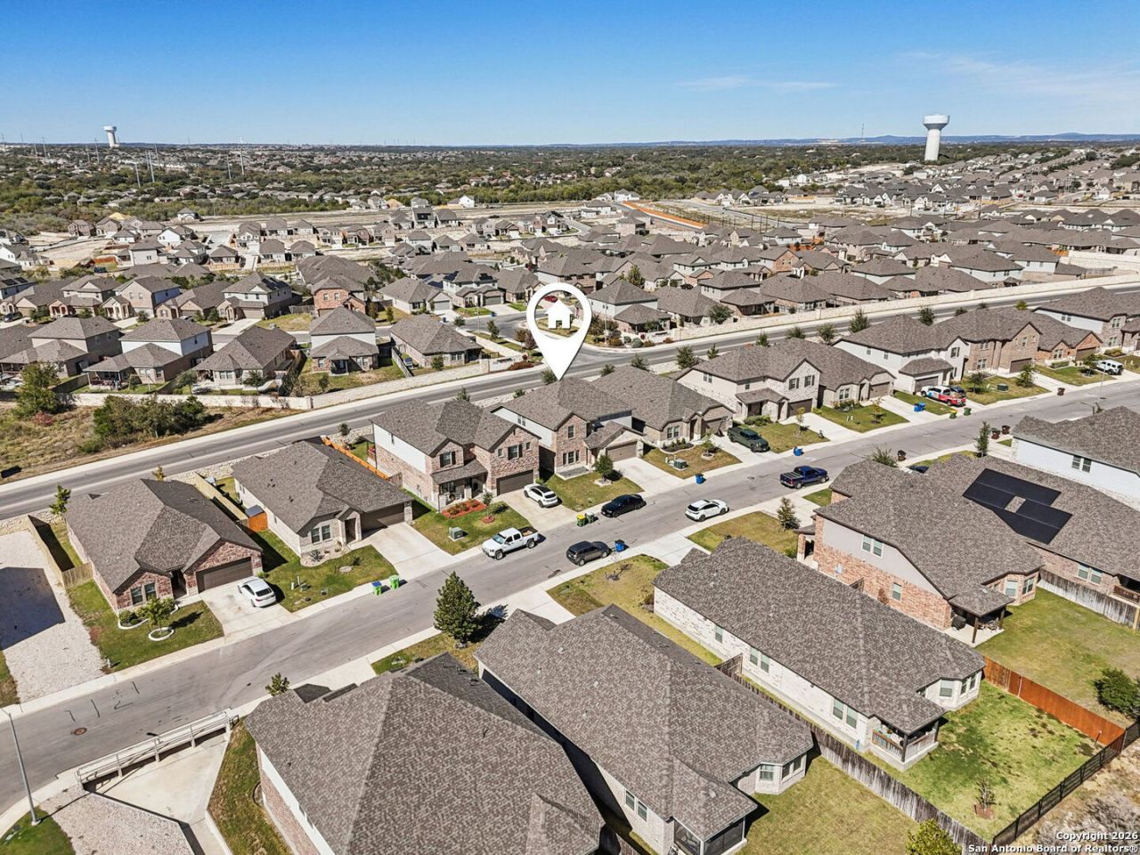 Welcome to this beautifully appointed 4-bedroom, 3.5-bath, two-story home showcasing an open-concept design and soaring ceilings that create a bright, airy atmosphere throughout. Thoughtfully upgraded and meticulously maintained, this residence blends modern functionality with timeless elegance. The gourmet kitchen is a true centerpiece, featuring granite countertops, a gas cooktop, built-in microwave and oven, dishwasher and a complete appliance package including refrigerator, washer, and dryer-making this home truly move-in ready. Engineered vinyl plank flooring flows through the main living areas, while tile accents in all wet areas add both durability and style. Retreat to the spacious primary suite, highlighted by bay windows, a spa-inspired bathroom with separate garden tub and walk-in shower, dual vanities, and a generous walk-in closet. Secondary bedrooms are well-sized, offering comfort and versatility. An expansive loft provides endless possibilities-perfect for a second living area, game room, or creative space-while the study/flex room adds even more adaptability for todays lifestyle. Additional features include ceiling fans throughout, a water softener, sprinkler system and a dedicated electric vehicle charging station. Outside, enjoy the curb appeal of custom-built brick/stone flower beds, adding a refined touch to the homes exterior. With its impressive upgrades, functional layout, and modern conveniences, this exceptional home offers comfort, style, and flexibility to suit a wide range of living needs. Approximately 13 miles to JBSA Lackland, 19 miles to Six Flags Fiesta Texas and very close various shopping, restaurants and entertainment. Move in Ready!