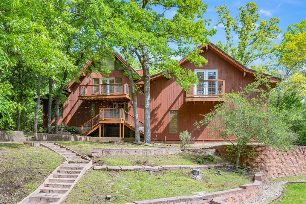 MOTIVATED SELLER! Stunning custom-built 1.5 story Lindal Cedar Home on wooded Golf Course lot in beautiful resort-style-living Holly Lake Ranch. Think Swiss Chalet with soaring vaulted ceilings, wood beam accents & a wall of windows for breathtaking views. Living Rm has stunning rock fireplace with combustion furnace insert for clean burning heat in living room, windows overlooking the wooded area & 13th Fairway, & doors leading to wrap-around deck. Light filtering roller shades & laminate wood flooring on main floor. Living room opens up to dining & kitchen. Kitchen has solid soft-close maple cabinets, granite countertops, pot & pan drawers, island with storage & pull-out pantry cabinets. Kitchen opens to light & bright sunroom with windows all around...or can be breakfast nook. The spacious primary bedroom with vaulted ceiling has doors leading out to the deck. Ensuite bathroom has a jetted tub, separate shower, 2 sinks & walk-in closet. Bedroom 2 is next to a full bathroom...perfect for guests. The 3rd BR off of the kitchen has a walk-in closet that could be used as a 2nd pantry. Laundry closet is located in this bedroom & accommodates a full-sized washer & dryer. Cedar stairway leads to the upstairs loft overlooking the living area and outside views. Huge loft is perfect as a 4th bedroom plus plenty of room for a sitting area or TV room. Loft has a full bathroom plus an extra storage closet. Proceed to the side deck & over to the bonus room above the garage. This approx 581 sq ft space with mini-split AC-Heat is perfect for a game room with plenty of room for beds too. It has a built-in desk area, cabinets & 2 storage closets. This space is NOT included in the advertised sq footage. Awesome wrap-around deck is perfect for entertaining & enjoying nature. Oversized garage includes golf cart parking. Complete with outside elevator for moving furniture, groceries...or people who don't do stairs. Walk-in basement storage with access to utilities. HVAC '23, WH '25.
