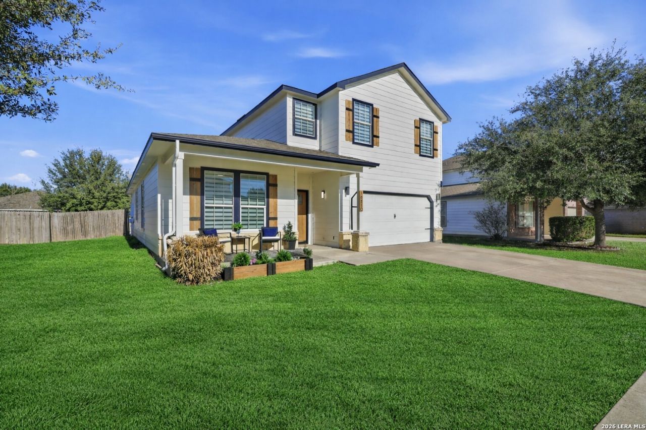 Welcome to 16210 Raceway Downs in Selma, TX, a beautifully updated, move-in-ready home that blends modern style, comfort, and functionality in one of the areas fastest-growing and most convenient locations. From the moment you arrive, the charming two-story exterior and inviting front porch set the tone. Step inside to a bright, open-concept layout filled with natural light, neutral tones, and warm wood flooring that flows throughout the main living spaces. The spacious living area is both welcoming and stylish, perfect for everyday living or entertaining. The kitchen is a true highlight, featuring sleek black cabinetry, stainless steel appliances, crisp white countertops, and a large center island with seating-ideal for casual meals, gatherings, or hosting guests. The adjacent dining area is perfectly positioned for easy entertaining and daily use. The home offers multiple well-designed living spaces, providing flexibility for a home office, additional seating area, or play space. The primary suite is a peaceful retreat with a spacious bedroom and a beautifully updated ensuite bath showcasing dual vanities, modern fixtures, stylish mirrors, and a clean, contemporary design. Secondary bedrooms are generously sized and versatile for family, guests, or work-from-home needs. Thoughtful upgrades are found throughout, including modern lighting, ceiling fans, fresh finishes, and a cohesive, designer-inspired look that makes this home truly move-in ready. Every space feels bright, polished, and functional. Outside, enjoy a yard with room to relax, entertain, or personalize to your lifestyle-perfect for Texas evenings and weekend gatherings. Location is a major advantage. Selma continues to experience strong growth and development, and this home is ideally situated near major highways, shopping, dining, and everyday conveniences. Youre just minutes from grocery stores, retail centers, restaurants, schools, and major employers, making commuting and daily errands easy and efficient. Stylish, spacious, and superbly located, 16210 Raceway Downs offers the perfect combination of comfort, design, and convenience. Dont miss the opportunity to make this beautiful home yours!