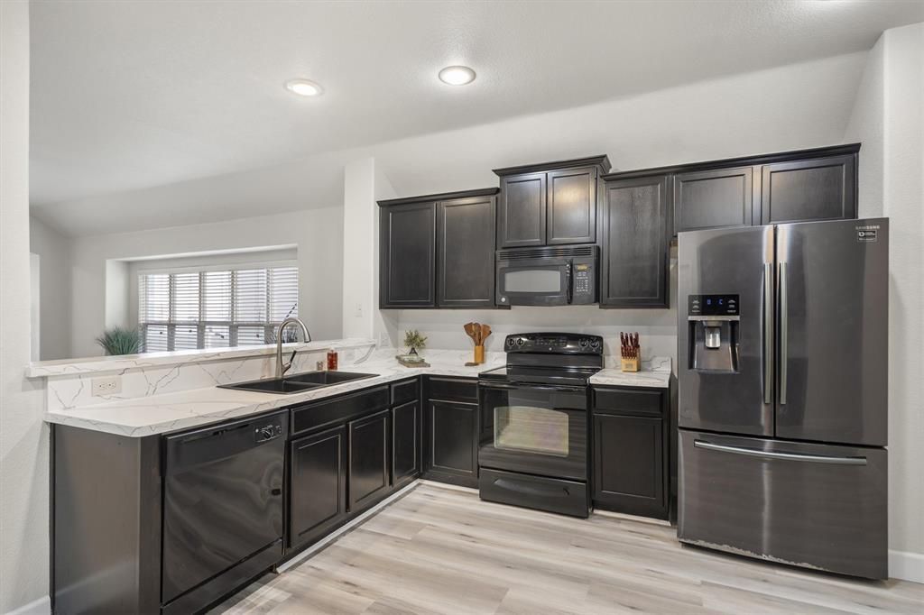 Beautifully updated one-story home in Providence Village featuring 4 bedrooms and a thoughtfully designed open floor plan. The home welcomes you into a spacious living room with a cozy updated fireplace and charming window seat—perfect for relaxing or entertaining. Throughout the main living areas, luxury vinyl plank flooring, fresh paint, and updated lighting create a clean, modern feel that’s both stylish and low maintenance. The open kitchen offers dark knotty alder cabinetry paired with a stunning marble-look countertop treatment, blending classic warmth with today’s design trends. Two full bathrooms feature timeless tile finishes, ideal for easy upkeep. The epoxy-coated garage floor adds both durability and a polished touch—perfect for storage, hobbies, or simply a clean, finished space. Step outside to a beautiful covered patio, ideal for morning coffee or evening gatherings. Located just a short walk to an exemplary elementary school and neighborhood park, this home is an excellent option for first-time buyers, those looking to downsize without sacrificing style, or anyone seeking convenience in the North Denton County area. Enjoy all the charm and amenities Providence Village is known for—this move-in-ready home is not to be missed!