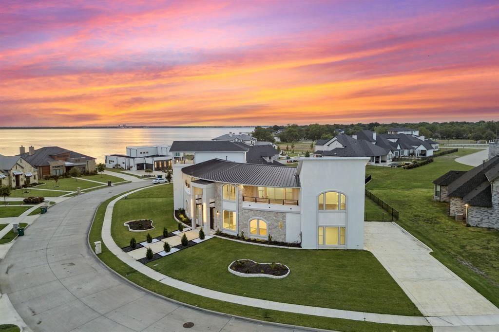 All offers will be considered. Welcome to a stunning LAKEVIEW home in the prestigious Heath Golf & Yacht Club—where luxury meets lakeside living. This expansive three-story residence offers a versatile, entertainment-ready floor plan tailor-made for large families and unforgettable gatherings.The main level sets the stage for connection and celebration with an open-concept living area anchored by a dramatic fireplace, flowing effortlessly into a chef-inspired kitchen. Designed for both everyday comfort and upscale entertaining, the kitchen features a grand 6’9” x 3’ island, oversized walk-in pantry, and sun-drenched breakfast nook overlooking the backyard. A secondary bedroom with a full bath on this floor provides ideal guest accommodations or multi-generational convenience. Pool Design Available. Upstairs, the spacious 26’ x 18’ owner’s suite delivers retreat-worthy comfort with floor-to-ceiling windows, dual walk-in closets, a spa-style bath complete with pedestal Jacuzzi tub and walk-in shower, plus a whimsical secret hideaway room.The second level offers room for everyone—three additional bedrooms with walk-in closets, a dedicated theater room, two breezy walk-out terraces, and an expansive 9’11” x 21’ game room make it ideal for relaxed evenings or vibrant entertaining. The third floor continues the theme with a cozy media room and a scenic terrace made for stargazing or quiet escapes.A three-car attached garage leads to an oversized rear concrete patio, providing plenty of space for outdoor grilling, games, or gathering beneath the open sky.Whether you're hosting a holiday dinner, movie night, or weekend get-together, this home is designed to bring people together and make lasting memories.