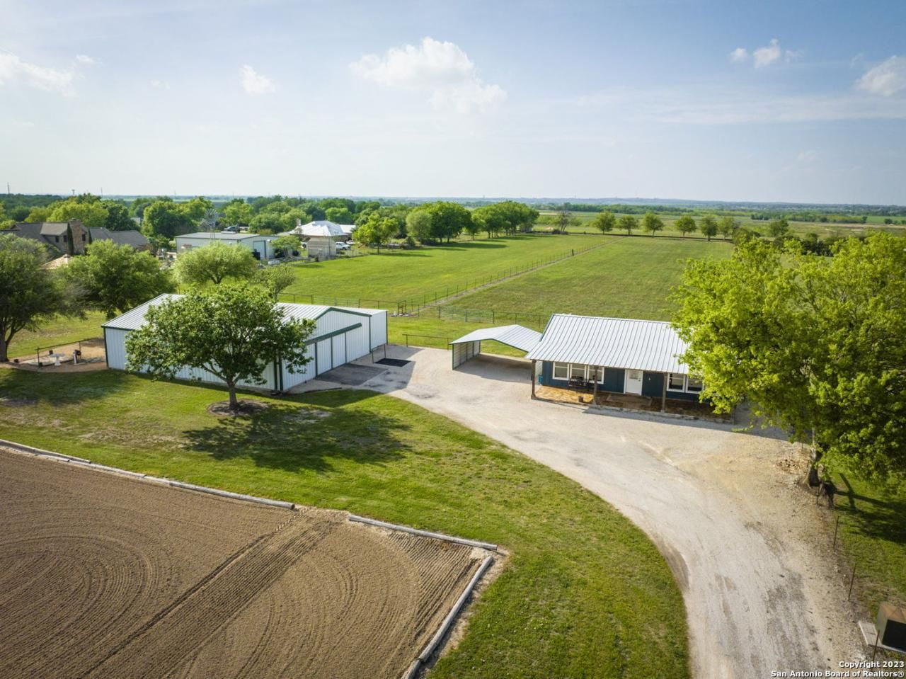 Horse lovers dream property. 2 separate homes on 10 acres. Immaculate and meticulously maintained with everything a person could want or need in highly desirable Marion TX located in Guadalupe County. 10 acres, 2 houses, 2 outbuildings/shops, 4 stall barn, arena, 3 pastures, and coastal fields used for hay production. Main house is 2893sqft and the guesthouse is a one bedroom 1080sqft home that is perfect for the parents. The barn has indoor/outdoor wash racks, large tack room and attached hay storage.