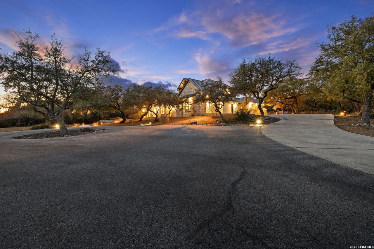 Experience refined Hill Country living at this exceptional estate, built in 2008 by Anderson-Jenkins and thoughtfully updated for modern luxury. Set on nearly 17 acres, with a wildlife exemption, this transitional horse property offers the perfect balance of privacy, recreation, and upscale comfort, with approximately 4,450 square feet of living space. A private driveway leads to a grand circle drive, welcoming you to the stunning stone and stucco residence crowned by a standing seam metal roof and accented with exposed hardwood trusses. Stained concrete walkways guide you to a covered front porch featuring scored and stained concrete, tongue-and-groove ceilings, elegant double doors with iron insets. Step inside the jaw-dropping grand entry, where architectural artistry takes center stage. Admire the dramatic triple barrel ceilings with gold leaf treatment and mood lighting, cool stone archways, hand-scraped hardwood floors, and impressive hardwood trusses. The home also features 2x6 framed exterior walls, underscoring quality craftsmanship and energy efficiency. The estate offers three private bedroom suites and four full bathrooms, with the flexibility to convert to four or even five bedrooms. The three-car garage provides ample storage for vehicles and gear. Completely refreshed in 2025, the chefs kitchen showcases new Cambria quartz surfaces, a new gas cooktop, dishwasher, designer sink and faucet, upgraded lighting, and refined finishes, creating a sophisticated space ideal for hosting and daily living. These enhancements are complemented by numerous additional updates and improvements made throughout the home. Smart home functionality is enhanced with a Control4 automation system, centrally located in a ventilated closet, offering streamlined control of home systems for comfort, convenience, and entertainment. Outdoors, the property is equally impressive! The expansive covered outdoor living space features tongue-and-groove ceilings, built-in speakers, stained concrete flooring, and a fully equipped outdoor kitchen with granite countertops, a Blaze grill plumbed in, sink, refrigerator, 88-inch ceiling fan, a granite dining table, a 32x16 saltwater pool with cocktail table and volleyball kit, a 3012 two-stall horse barn with tack room, approximately 7 fenced acres of pasture, a 25x24 workshop on slab, and a 100-yard private shooting range! With abundant space and thoughtful amenities, this estate is ideal for equestrian enthusiasts, outdoor recreation, and serene country living. The Cross Canyon Ranch community consists of just 65 lots encompassing 913 acres. This is a rare opportunity to own a premier Hill Country estate where architectural elegance meets acreage, privacy, and lifestyle amenities!