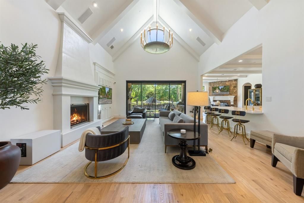 Experience timeless European elegance in this energy-efficient custom manor by Graduate Master Builder Rick McDonald, nestled on over an acre in the prestigious lakefront estate community of Terrabella on Lake Ray Hubbard. Surrounded by majestic oak and pecan trees with serene lake views, this 6,000+ sq ft masterpiece blends old-world charm with modern sophistication. A soaring beamed vaulted ceiling and Juliet balcony crown the grand family room, one of seven fireplaces found throughout the home. The flexible layout includes five spacious bedrooms, five full and two half baths, a private downstairs mother-in-law suite with full bath and its own utility room, a handsome office-library, game room, wet bar, and in-home theatre. The chef’s kitchen is both elegant and functional, featuring dual islands, premium appliances, a pot filler, and a walk-in pantry, seamlessly connected to the formal dining area and butler’s pantry. A custom wine cellar and built-in safe add to the home’s thoughtful amenities. One upstairs bedroom includes a charming loft, perfect as a playroom or study retreat. Outback takes you to a breathtaking covered outdoor living pavilion with fireplace, built-in grill, and dining space, framed by professional landscaping and a dramatic rock waterfall and river feature that creates a peaceful, resort-like setting. Additional highlights include a Porte Cochere, oversized utility room, European chimney pots, abundant storage, prewired sound system, and extensive millwork and custom cabinetry throughout. The primary suite offers a fireplace, spa-inspired bath, and a generous walk-in closet with custom shelving. Multiple zones of HVAC ensure year-round comfort, and energy-efficient construction provides lasting value. This exceptional home offers a rare blend of elegance, comfort, and inspired design just moments from Lake Ray Hubbard.