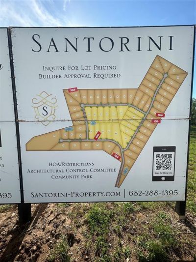 Santorini is a prestigious residential development in Brock ISD, conveniently located to schools, shopping, and restaurants. Elegant iron gates open to rolling hilltop views, spacious homesites with paved streets, under ground utilities and high speed fiber Internet. Tour today to select your lot and custom builder and create your estate home.
