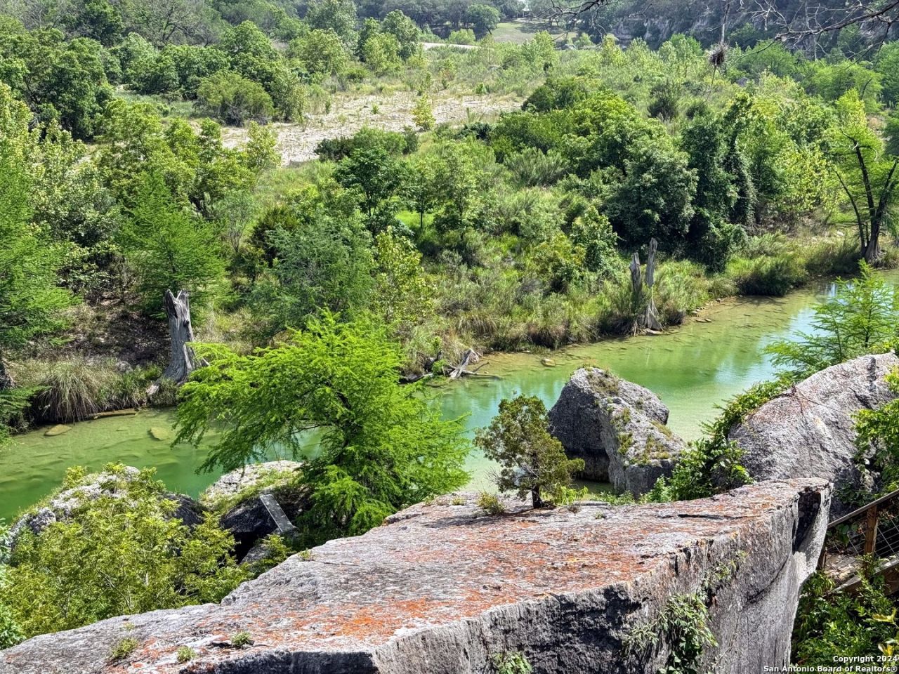 Gorgeous Medina River views from this .68 acre lot. Huge boulders terrace the land between the water and the top of the bluff. Fabulous building site! Small cabin with electric and septic and community water system. Cabin is a one bedroom, one bath with large sleeping porch and full kitchen. Gorgeous trees including Maples! Located between Pipe Creek and Lakehills. If you have seen this before, come back. It is much better!