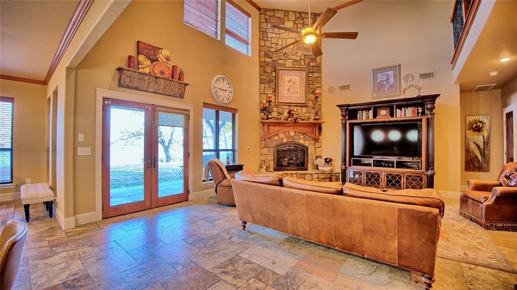 Open the door to a relaxed landing coupled with immediate views of the lake. This lush 3–4-bedroom 2.5 bath retreat is a desired inner depth locale on Lake Nocona main body waterfront. From the transparent living area with a floor to ceiling stacked rock gas fireplace with electric thermostat that dominates the entire room for personal comfort to the enhanced functionality of the hefty kitchen island with under storage that ties all the essentials together including built in gas burners, microwave, & desired double ovens, this kitchen is equipped. Oversupply of cabinets with endless granite countertops to assure all clutter is contained. Mass area for a large dining table with vintage views that never go out of style. Well placed windows that flood the rooms with natural light that gives an indoor-outdoor feel. Half bath for guests. Large utility with counter for good working space. Main bedroom is conveniently located downstairs for long term use with tranquil lake views for a bright start to the day & a peaceful close in the evenings. Designer like closet with window. Dual sinks, separate shower, & a sunken garden tub. Upper level offers 2 bedrooms & full bath with room-to-room harmony that's adjoined by the clever catwalk with wrought iron detail & captures the attraction of the centerstage below. No upstairs is complete without a bonus entertainment room & if the need for additional beds is a must install barrack style bunk beds for a cozy fix. Work from home with a fully implemented office. Outdoor boasts a waterfront shaded gathering space that makes the perfect backdrop for entertaining or absolute relaxation. Covered patio on the lakeside. Nothing like sitting on the porch with a lake vibe watching all the action. Rock Retaining wall. Large 2 garage & plumbed for water & ice maker. 3 HVAC units. If you've been on the sidelines now's the time to nudge those decisions & follow the roadmap. This one's up for grabs! Survey shows property to be 0.8339