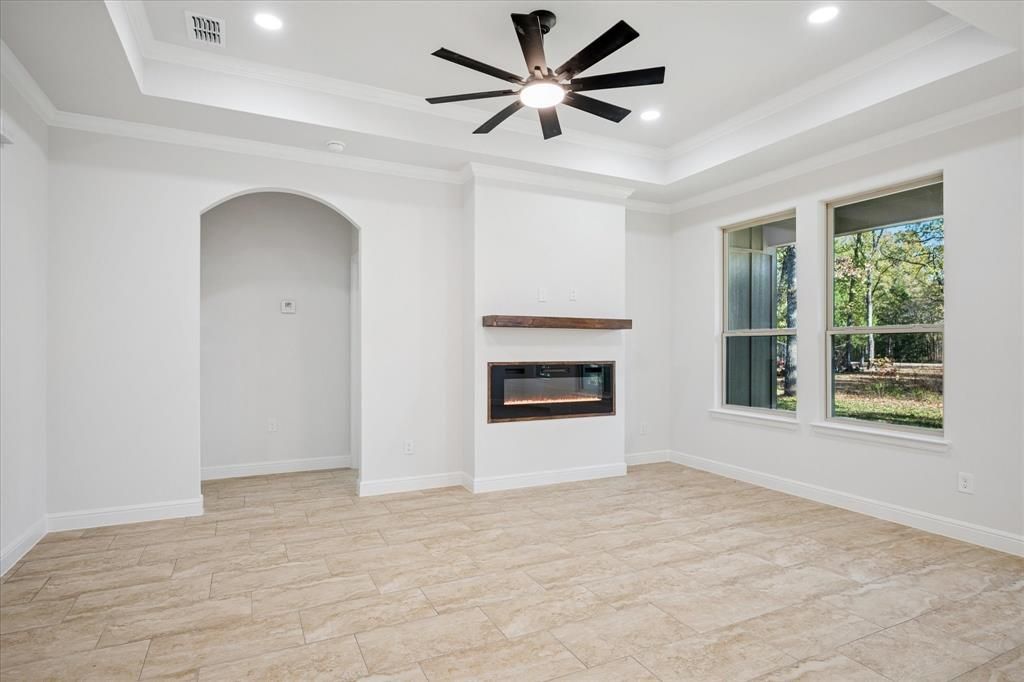 This home qualifies for 0% DOWN PAYMENT (Conventional) or 2-1 BUYDOWN -REDUCED MONTHLY PAYMENTS FOR THE FIRST 2 YEARS, through the seller’s preferred lender. Seller to contribute $5,000 TOWARD BUYER’S CLOSING COSTS. Experience exceptional modern living in this brand-new 2025 open-concept home, thoughtfully designed for seamless entertaining in the highly sought-after, gated Beachwood Estates community—just a short walk from Cedar Creek Lake. This newly constructed residence, built on 25 piers, features impressive 9-foot cathedral ceilings and an expansive living room anchored by a striking electric fireplace, flowing effortlessly into the kitchen and dining areas. Large windows bathe the interior in natural light, highlighting the ceramic flooring and neutral color palette that complements any style. The kitchen is a true centerpiece, offering custom cabinetry with integrated lighting, a walk-in pantry, and an oversized quartz island with seating for four or more—ideal for casual dining and gatherings. The split floor plan provides optimal privacy, with two bedrooms on one side of the home and a spacious primary suite on the other. The primary retreat includes an en-suite bath with dual sinks, an oversized walk-in shower, and a generous walk-in closet. Enjoy the connection between indoor and outdoor living through the high-ceiling living-dining area that opens to a sizable backyard featuring a covered patio and a full sprinkler system—perfect for relaxation or hosting guests. Residents of Beachwood Estates enjoy premium amenities including a private boat ramp, designated fishing areas, lakeside grilling stations, and a community pool—all within easy reach. Whether you’re seeking a serene weekend escape or a full-time residence, this home offers an exceptional opportunity.