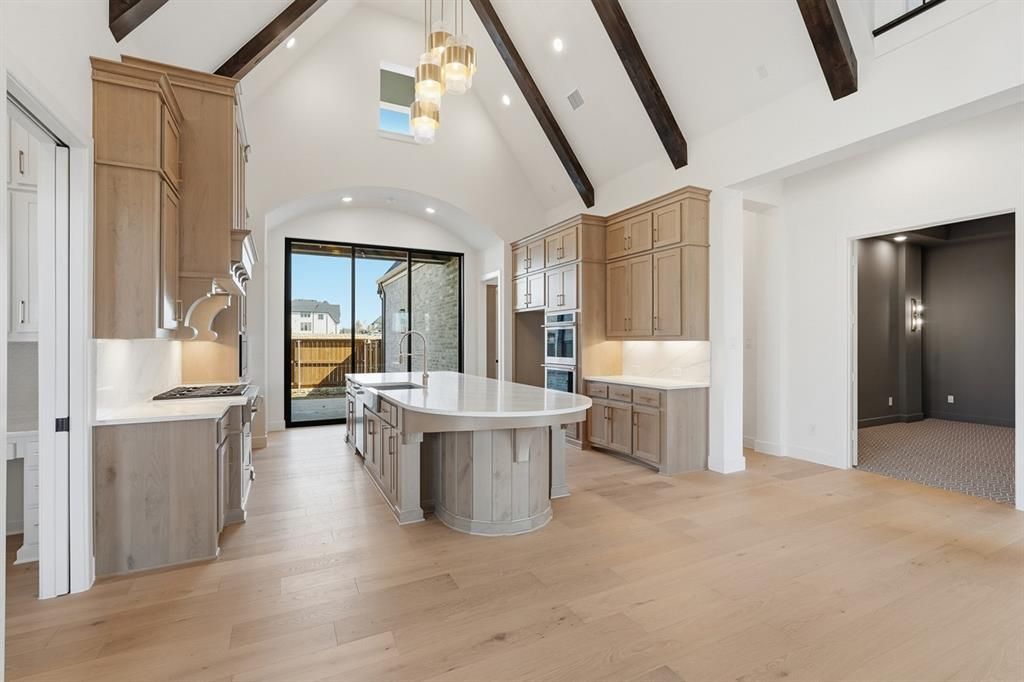 Welcome to this stunning residence that combines luxury, functionality, and timeless design. Step inside to discover an extended primary suite with a spa-inspired bath featuring a freestanding tub and elegant finishes. The heart of the home boasts a great room with soaring wood-beamed ceilings, a cozy fireplace seamlessly connected to a chef’s kitchen and planning desk. Enjoy effortless indoor-outdoor living with sliding glass doors opening to a courtyard just off the kitchen and a separate extended outdoor living space perfect for entertaining. An upstairs game room, wet bar and retreat area add sophistication and versatility. With five spacious bedrooms, each with en suite full baths, comfort is guaranteed. Outside, the home boasts timeless curb appeal with Frost brick, black-on-white windows, a Black Onyx roof and a 4-car garage provides ample space for vehicles and storage. Every detail is designed for convenience and style.