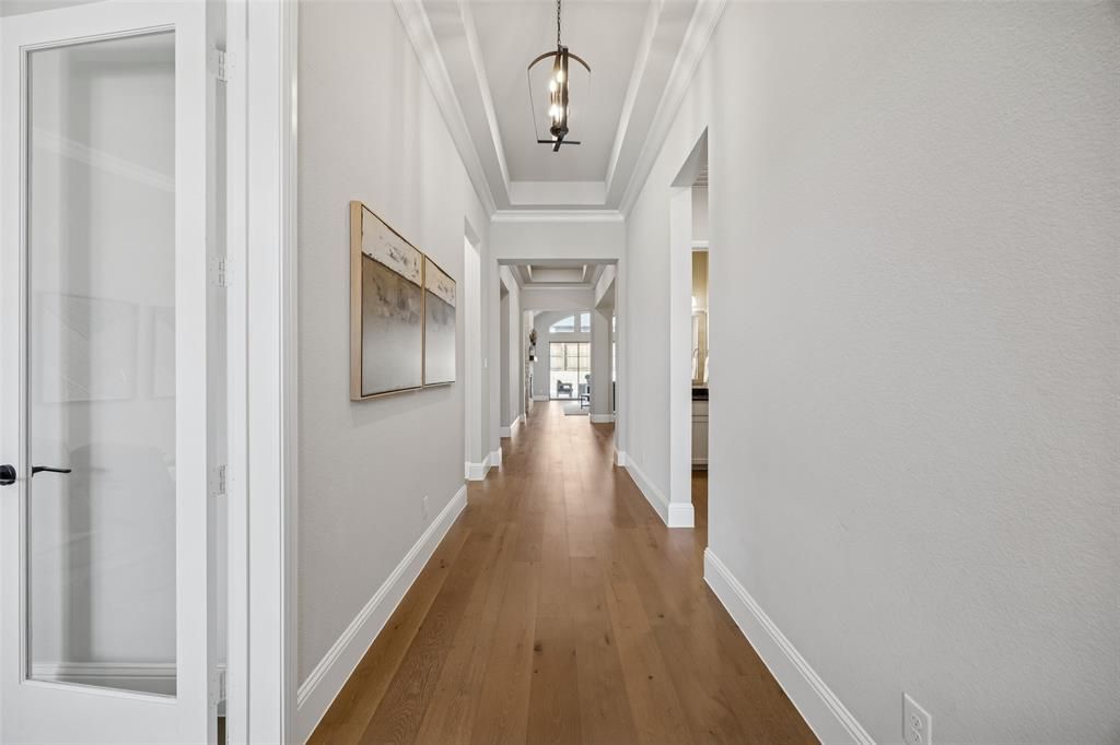 Welcome to this stunning single-story modern farmhouse in the highly sought-after Star Trail community of Prosper ISD - Hall Elementary, Moseley Middle, Prosper High. Built in 2021, this move-in ready home offers a light-filled open floor plan, designer finishes & the perfect blend of luxury & functionality.Step inside to soaring ceilings, luxury vinyl plank flooring & walls of windows that flood the home with natural light. The expansive open-concept living room features a gas fireplace & flows seamlessly into the chef’s kitchen — complete with granite countertops, oversized kitchen island, built-in cabinets, double ovens, gas cooktop, walk-in pantry, farm sink & upgraded cabinet hardware. The neutral color palette and modern rustic charm make this home truly turnkey.The private primary suite is a retreat with a spa-like ensuite bath offering dual vanities, garden tub, separate shower & a large walk-in closet. All secondary bedrooms are spacious, each with access to a full bath — perfect for guests or multigenerational living. A dedicated home office, media room & multiple dining spaces provide flexible living options for today’s lifestyle.Enjoy indoor-outdoor living with California-style sliding patio doors leading to a covered patio & low-maintenance backyard with 2024 hardscape upgrades — ideal for entertaining. The 3-car tandem garage features epoxy floors & EV charging station, offering both style & practicality.Recent upgrades include:Water softener,Epoxy garage floors,Kitchen cabinet hardware,Roll-up blinds,2024 backyard hardscape.This home sits in a community-centric neighborhood known for its friendly atmosphere & resort-style amenities including community pool, tennis courts, jogging & bike paths, parks, playgrounds & greenbelt spaces. Walking distance to elementary school! Quick access to DNT, shopping, dining & entertainment.This is the perfect combination of luxury, location & lifestyle!