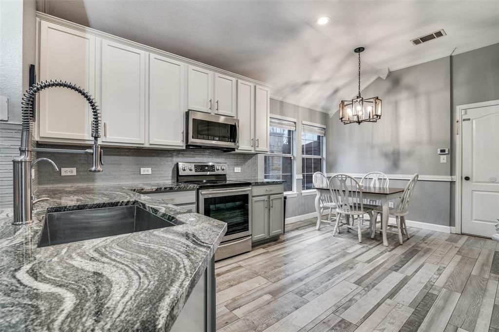 Turnkey and move-in ready! This versatile home offers a flexible floor plan with 3 bedrooms plus a study—ideal as a home office or easily used as a 4th bedroom. Enjoy 10-ft ceilings in the main living areas and an expansive open-concept living and dining space perfect for entertaining. The kitchen features granite countertops, a stainless steel appliance package, dedicated coffee bar area, and ample cabinet space. Laminate wood flooring runs throughout with ceramic tile in the bathrooms. The spacious primary suite includes a jetted tub, separate stand-up shower, and dual closets & back-lit mirrors. A backyard retreat offers a beautiful covered patio with built-in grill—perfect for relaxed sunset evenings and outdoor gatherings! Easy access to LBJ & I-30!