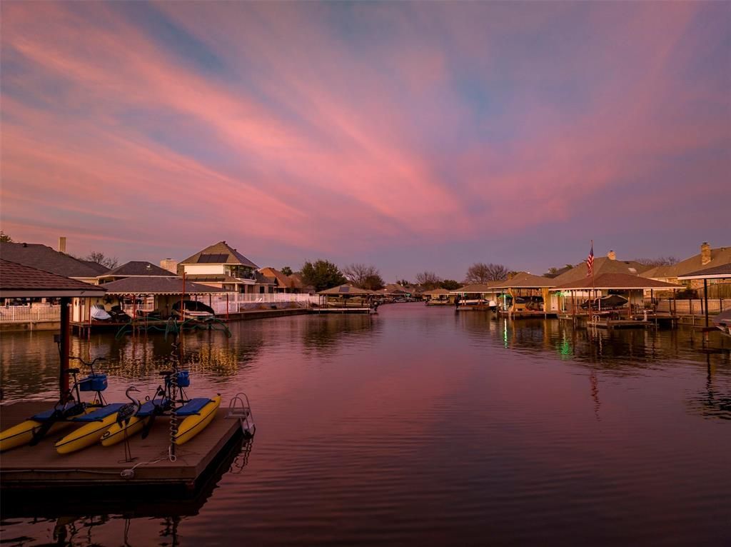 For a limited time, seller will include the boat with an acceptable offer before May 8th —offering a true turnkey lakefront lifestyle.Beautifully remodeled lakefront residence located in Granbury’s sought-after Waters Edge. This home has been thoughtfully redesigned and captures the essence of refined lakefront living. A rare canal-corner setting provides long, open water views and added privacy, with no rear dock to interrupt the scenery. The property offers approximately 75 feet of wide, navigable, deep water frontage that flows out to the lake.The kitchen is ideal for entertaining and everyday living, offering rare Patagonia granite countertops, upgraded appliances, a dedicated coffee bar, and a spacious butler’s pantry with room for two full-size refrigerators or freezers. The pantry leads to a discreet safe room with cabinetry that may also serve as additional pantry space.The private primary suite features a walk-in closet, dual vanities, and a spa-style multi-head shower. A 2023 remodel nearly doubled the home’s square footage, adding two bedrooms, a full bath, and a bonus room suitable for a media room, office, or guest space. Energy-efficient upgrades include an encapsulated roof, solar-powered mini-splits, and two commercial-grade Trane HVAC units. Outdoor amenities include a covered patio, fenced backyard, sun deck, private covered dock with boat lift and lake pump irrigation.If you are a golfer, Harbor Lakes Country Club is a short golf-cart ride away and offers both golf and social memberships. Conveniently located near town, you’re just a car or boat ride from restaurants, shopping and more!HOA maintains greenspace and seawalls. All information is deemed reliable but not guaranteed. Buyer to verify all information.