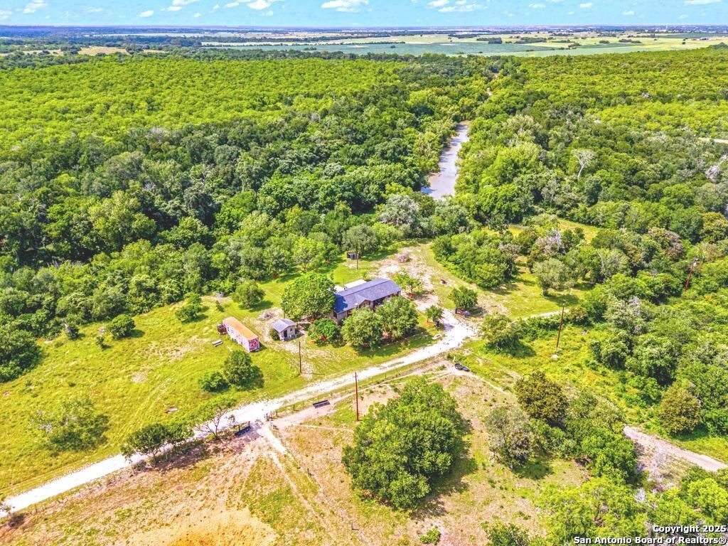 Escape to your own slice of Texas paradise with this rare opportunity to own 20 unrestricted acres on a beautiful riverfront ranch with direct access to the San Antonio River! This well-kept 3-bedroom, 2-bath home is surrounded by mature trees and wide-open space, offering the perfect setting for peaceful country living. Enjoy quiet mornings and tranquil evenings from the front porch while watching the abundant wildlife pass through. Follow the hand-paved stone path down to the rivers edge, where you can relax, take in the serene views, or fish for catfish and bass. Inside, the home features brand new flooring throughout, updated lighting, brand new energy-efficient windows, and new stainless appliances. A brand new water well and pump with a complete filtration system ensures fresh, reliable water. Deer feeder, security system, zero-turn mower, and game cameras are also included, adding both comfort and peace of mind. The property is also cross-fenced for cattle, making it ideal for agricultural use or livestock. ALL furniture and appliances convey, making this a turnkey opportunity ready for immediate enjoyment. The property carries an AG exemption and is ideally located between San Antonio and Corpus Christi, giving you the best of both city convenience and coastal charm. Whether youre seeking a private homestead or weekend retreat, this riverfront gem offers unmatched peace, comfort, and potential. Schedule your showing today!