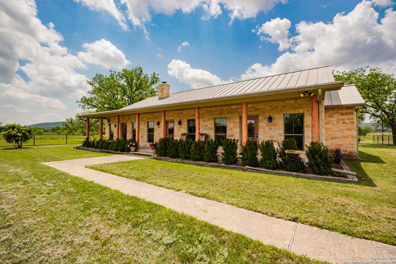 10 Acres - Fabulous Custom Home Utopia - Bandera County Located in one of the most unspoiled areas of the Texas Hill Country, this new listing offers not only a fabulous setting but also one of the most beautiful custom homes anywhere in Bandera County. Entering the limestone drive, you immediately notice the quality of planning and workmanship in this select property. Most notably, the 4-bedroom, 2 1/2 bath custom limestone home was built by Hill Country Classics Homes. There is also a 24x36 metal shop with an equal sized covered parking area and an attached 16x40 covered RV pad. There is a large, pipe-rail-fenced yard around the house, and low game fence along the boundaries of the whole property, allowing for wildlife to safely come and go. The property has an excellent water well; a large pecan bottom; and incredible views of the surrounding valley. The owners have planted dozens of additional trees including Live Oak, Burr Oak, Mountain Laurel, and other varieties on the well manicured grounds. The spacious (owner designed) home offers standing seam roof, limestone exterior, concrete walkway, wood and stained concrete floors, a full-length 7x62 porch on the front and a 10 x 26 porch on back of home. Inside, there is a large open living room with working wood fireplace (propane is piped to the fireplace and gas cook top); cathedral ceilings; wood floors; custom designed and built bookcases and entertainment center; bar area with counter and fridge . The open kitchen and dining area has a large island; stainless steel appliances; gas cooktop; built-in microwave and convection oven; ample cabinets and drawers; extensive counter space and a large walk-in pantry. The cabinetry and woodwork throughout the home highlights the quality of craftsmanship that was put into the entire construction of the home. The primary bedroom is 18x17 and offers a huge full bath with walk in shower, double sinks, 11x13 walk in closet with built-in chest of drawers and shelving. The primary bedroom is adjacent to a bonus room that is used as an exercise room and storage space. On the north end of the home are three additional bedrooms, two of which share a full bath with garden tub and sink, individual walk-in closets, and a fourth bedroom that is currently used as office space. Additional rooms include a half bath; large mud/utility room with sink; washer dryer; extra refrigerator; second walk-in pantry; a mechanical room that houses the hot water heater and two water softener systems; and numerous closets for extra storage space. From the amazing views, the privacy of being on one of the least-traveled county roads in Bandera County, to the free-ranging wildlife and the dozens of species of birds, there are many more features of this property that make it so special. Come see for yourself.