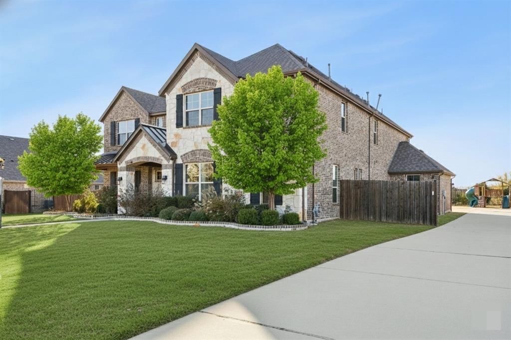 Discover refined luxury living in this stunning 5-bed, 4.5-bath estate located in the highly desirable Stoney Creek community of Sunnyvale ISD, just minutes from LAKE RAY HUBBARD. Situated on a generous 0.43-acre lot, this home is ideal for entertaining, outdoor gatherings, and even a future pool. SELLER TO CONTRIBUTE $5K toward buyer’s closing costs or interest-rate buydown.Still covered under the BUILDER'S WARRANTY the home showcases a seamless open-concept design with abundant NATURAL LIGHT, SOARING CEILINGS, ELEGANT HARDWOOD FLOORS, and NEW CARPET less than 1 year old. The family room features a FIREPLACE and flows effortlessly to the expansive backyard.The chef’s kitchen is equipped with GRANITE countertops, a coffee bar, top-of-the-line KITCHEN-AID APPLIANCES, DOUBLE OVENS, gas cooktop, microwave, dishwasher making it perfect for hosting.The owner’s suite offers a spacious bedroom, a soaking tub and walk-in shower, and an OVERSIZED walk-in closet. Additional living spaces include a private study with vaulted ceiling and built-in cabinetry, a media room with kitchenette and storage closet, and a generous game room designed for both comfort and entertainment.Step outside to enjoy a beautifully landscaped backyard featuring a BASKETBALL COURT, KIDS PLAYGROUND SLIDE, unobstructed greenbelt views, a see-through fence lined with PRIVACY TREES, and THREE COVERED PATIOS with spaces and connections for an OUTDOOR GRILL, REFRIGERATOR and FIREPLACE. An AUTOMATIC GATE leads to a 4-CAR GARAGE with EPOXY flooring.Additional highlights include: FREE GOLF CART, FOAM ATTIC INSULATION for energy efficiency, 2 tankless water heaters, Quartz countertops in all bathrooms.Community amenities offer POOLS, FITNESS CENTER, fishing pond, playgrounds, and scenic trails. The home is walking distance to Sunnyvale ISD campuses, making it an exceptional choice.Don’t miss this rare opportunity to own a this home in a family-friendly ACREAGE neighborhood.