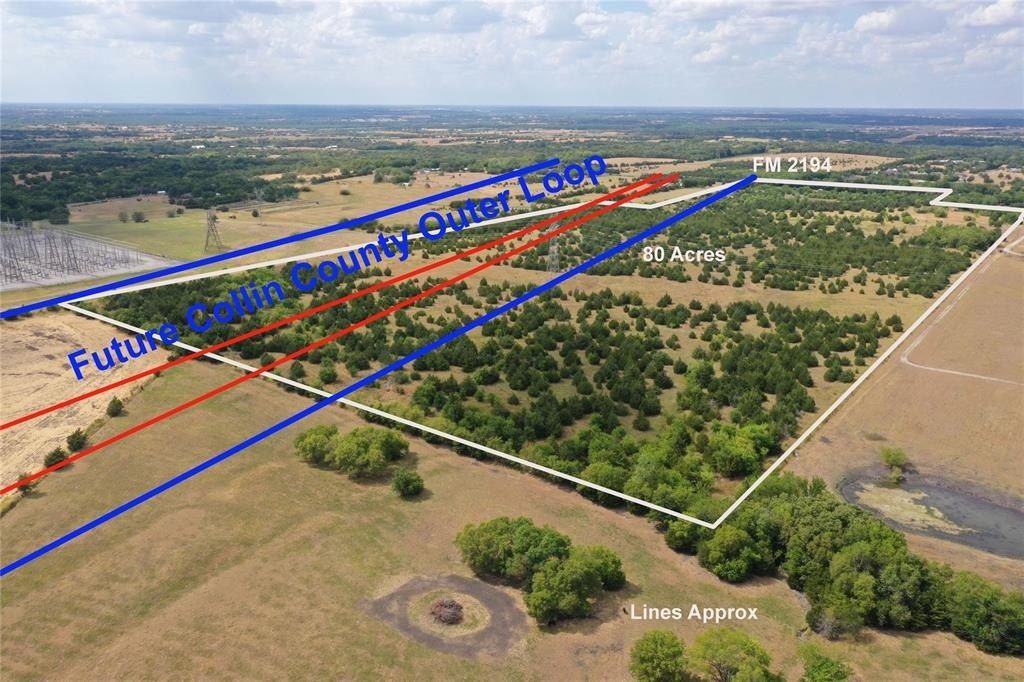 79 +- AC of land situated in Farmersville, TX!! Located on the hard corner of FM 2194 and the PROPOSED COLLIN COUNTY OUTER LOOP. Approximately 3000' of frontage on the proposed outer loop. This spacious 79+- AC tract has plenty of potential for whatever goals you have in mind. Build the dream house you've always wanted, or get a head start on all of your investment & development plans. Located in a wonderful, safe, convenient area. 3-4 miles from Downtown Farmersville, with close proximity to restaurant's, shopping & so much more. So many opportunities available with this tract! Great road frontage with AG Exemption. Easy access to Hwy 380 and Hwy 78.