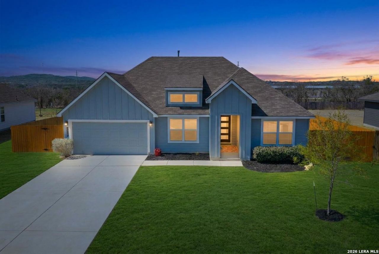 Located in the highly coveted, gated community of The Reserve at Copper Canyon in beautiful Bulverde, Texas. Built in 2023 and offered in truly better-than-new condition, this 2,159 square foot single-story home sits on a level half-acre lot and combines modern design, thoughtful upgrades, premium community amenities and Hill Country living - all with no city taxes and no MUD tax. From the moment you arrive, the covered front porch creates a warm and inviting first impression. Step inside and youre immediately greeted by abundant natural light, neutral tones, and luxury vinyl plank flooring - with almost zero carpet anywhere in the home. The open-concept design seamlessly connects the living, dining, and kitchen spaces, creating an ideal flow for everyday living and entertaining. The kitchen is both stylish and functional, featuring stainless steel appliances, gas cooking, quartz countertops, subway tile backsplash, modern gold hardware, and a touch-free Wellfor faucet with a deep basin sink. Abundant cabinetry and a large walk-in pantry provide exceptional storage. The kitchen opens to a 16x13 dining room with great views to the private backyard. The 20x18 living room offers plenty of space to relax, and entertain alike with a large ceiling fan and abundant natural light pouring in from the windows with 2" faux wood blinds throughout. Smart home technology enhances both convenience and security, including a digital front door lock, video doorbell, smart thermostat, smart Z-Wave switches, garage door openers, and a smart home panel with security system pre-wiring. The split-bedroom layout ensures privacy, with the primary suite thoughtfully separated from the secondary bedrooms. This spacious retreat offers a spa-like bath complete with dual vanities, a large walk-in shower with natural light, open linen storage, a private water closet, and a huge walk-in closet, the only room with carpet in the home. Three additional bedrooms provide flexibility and individual privacy, each with generous closet space, upgraded fixtures, natural light and easy access to a well equipped full bath with tub/shower combo and more open linen storage. The oversized utility room is a standout feature - offering extensive storage and auxiliary space for additional appliances or organization needs. Throughout the home, youll find impressive closet space, smart storage solutions, and a true sense of intentional design. Step outside to the covered back patio, complete with a retractable shade system, creating a comfortable space to relax year-round. The privacy-fencing has been freshly stained offering a clean, finished look with room to personalize. With a level half-acre lot, theres ample space for future enhancements while still maintaining privacy. Additional upgrades include a water softener with whole-home carbon filtration system, a sprinkler system and a two-car garage. The Reserve at Copper Canyon residents enjoy gated entry, premium community a