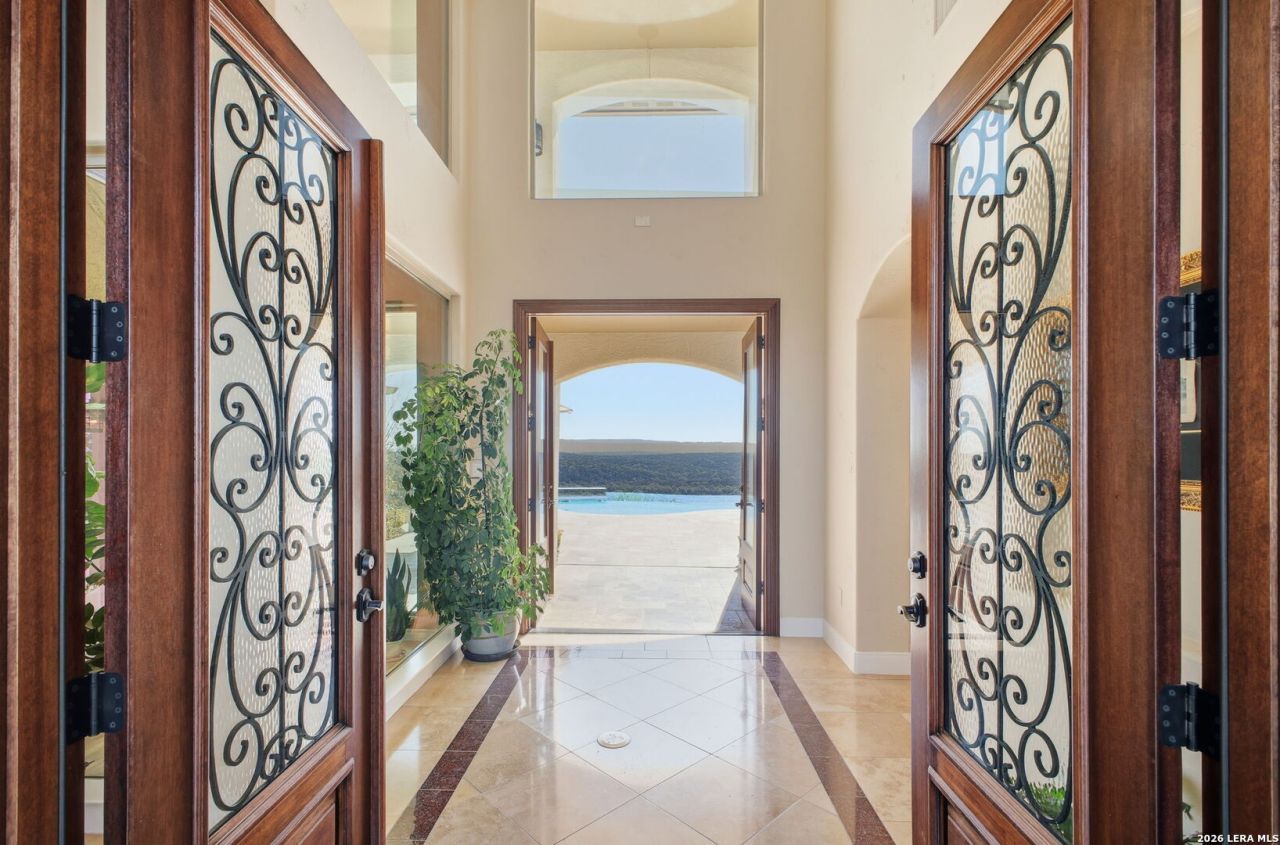 Majestic Hill Country Estate on Over 9 Acres | Sweeping Vistas | Resort-Style Living Set atop more than 9 acres of rolling Hill Country in Bulverde, 29940 Beck Rd. is a one-of-a-kind custom estate offering breathtaking panoramic views from nearly every room. Mature trees, gentle slopes, and elevated positioning create unmatched privacy while capturing expansive vistas of the surrounding countryside. A grand entry welcomes you into a dramatic foyer and atrium, highlighted by a striking custom ironwork staircase that sets the tone for the homes architectural elegance. Walls of windows and arched openings frame the scenery throughout, seamlessly blending indoor luxury with the natural beauty beyond. The main living spaces are anchored by a floor-to-ceiling, double-sided stone fireplace, creating a stunning separation between the living and dining rooms-both surrounded by soaring views. The open-concept kitchen is equally impressive, featuring a copper-clad ceiling, six-burner gas range, built-in bar cabinetry, expansive breakfast area, and a generous walk-in pantry. Even everyday moments are elevated with uninterrupted countryside views from the kitchen sink. A dedicated office provides an inspiring workspace with arched windows overlooking the hills. The main-level primary suite is a private retreat, complete with a stone fireplace, dramatic feature wall, and direct access to the patio and pool. Wake each morning to tranquil views of the infinity pool and rolling landscape. The spa-like primary bath includes multiple closets, a jacuzzi tub, built-in sauna, and a marble-surround walk-in shower. Also on the main floor, a spacious secondary bedroom with its own private ensuite bath offers ideal accommodations for guests or multigenerational living, providing comfort and privacy separate from the primary suite. Upstairs, a loft and balcony overlook the pool and sweeping Hill Country, accompanied by two additional bedrooms, sharing an ensuite bath, and second laundry room perfect for family or guests. Outdoor living is nothing short of resort-inspired. A beautifully designed covered patio opens to an infinity-edge pool overlooking endless vistas, complemented by a separate hot tub, grill, pool-accessible bathroom, and a covered sunroom-perfect for sunset evenings and year-round enjoyment. Additional features include a laundry room with built-in sink, a thoughtful split-bedroom layout, and gently sloped acreage adorned with mature Hill Country trees, maximizing privacy and views. A rare opportunity to own a private Hill Country estate where luxury, views, and space converge-just minutes from modern conveniences, yet worlds away.