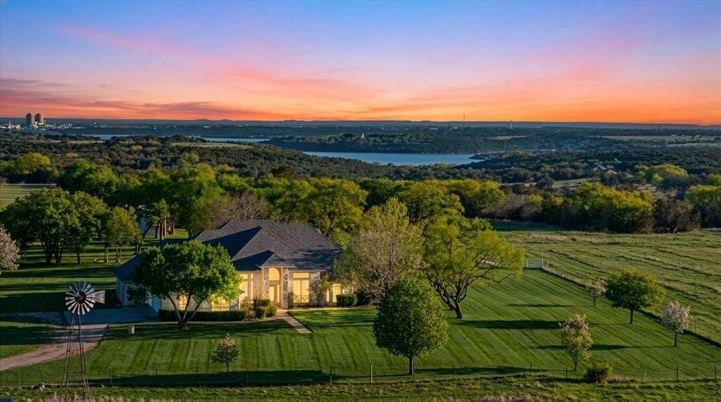 Encompassing 86+ pristine acres, this distinguished North Texas estate presents a rare opportunity for discerning buyers seeking privacy, scale, & enduring value. The property features three serene ponds, a 3,479 sqft custom Austin stone residence, & a 3000 sqft workshop, set within a scenic landscape just minutes from the historic charm of Granbury, TX, near the foothills of Comanche Peak. Located approximately one hour from Fort Worth, the estate offers convenient access to major airports, healthcare, and urban amenities while maintaining a strong sense of seclusion—ideal for a primary residence, second home, or long-term legacy holding. A gated entry & private drive lead to the residence, positioned at the highest elevation of the property on two fully fenced acres. Built in 2001, the home reflects timeless craftsmanship & thoughtful design, offering three bedrooms, two & one-half baths, formal dining, private office, sunroom, & an expansive living area centered around a striking Austin stone fireplace with custom built-ins. East- & south-facing covered porches capture abundant natural light and expansive views. The primary suite offers direct porch access and a spa-caliber bath with soaking tub, walk-in shower, & separate walk-in closets. Additional amenities include a walk-in pantry, oversized laundry room, & a three-car garage with attic storage. The land is well balanced & highly functional, cross-fenced into four sections with improved Coastal Bermuda pasture, sandy loam soils, gentle topography, and excellent drainage. Approximately 80 acres support grazing and hay production, complemented by three ponds & discreet cattle handling facilities. A 3000 sqft workshop, set among mature oak trees, offers insulated space, storage, lounge area, half bath, & dual roll-up access. With abundant native wildlife, panoramic sunrise & sunset views, and commanding vistas of Comanche Peak, this estate offers a rare combination of lifestyle, privacy, & long-term value.