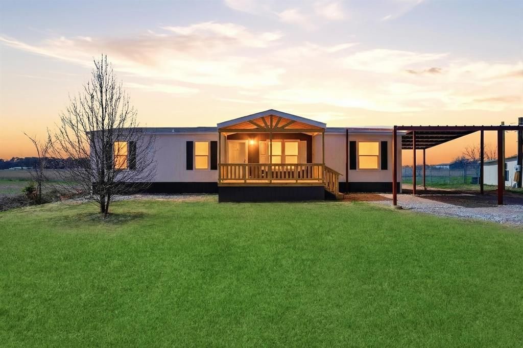 Welcome home to 309 Rhett Ct. in Aurora, TX — where modern comfort meets peaceful country living on an oversized 0.36-acre lot with no HOA. This new 2025 home offers 1,568 square feet of inviting, thoughtfully designed living space featuring 4 bedrooms and 2 full bathrooms. Step inside to an open-concept layout filled with natural light, highlighted by a stylish kitchen with a spacious island, sleek modern white cabinetry, and a full appliance package including range, microwave, dishwasher, and refrigerator — ready for everyday living and effortless entertaining. The dining area flows seamlessly to the outdoors through glass sliding doors, leading to the rear porch and creating the perfect indoor-outdoor connection for relaxing evenings or weekend gatherings. The private primary suite serves as a true retreat, complete with a walk-in closet and ensuite bath featuring a walk-in shower. Secondary bedrooms offer flexibility for family, guests, a home office, or hobbies. Enjoy quiet mornings on the 10' x 18' covered front porch and unwind in the evenings on the rear porch overlooking your spacious yard. The property also features a 12' x 40' L-shaped carport, providing ample covered parking and convenience. For added peace of mind, this home includes a 1-year manufacturer warranty — offering confidence in your investment from day one. If you’ve been looking for space and move-in ready convenience without HOA restrictions, this is your opportunity to make it yours before someone else does! Schedule your showing today!