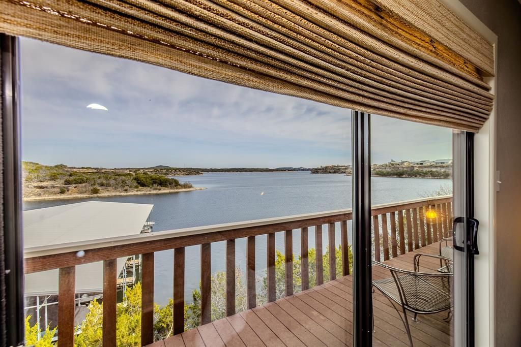 Experience waterfront living at its finest in this beautifully remodeled 3 bed 3 bath lakefront townhome offering breathtaking views. Designed to capture the beauty of the water, walls of windows flood the home with natural light and frame stunning vistas. The spacious, updated kitchen is both stylish and functional. Each bedroom includes its own private en-suite bathroom, creating ideal comfort and privacy for family and guests. The 3rd bedroom is currently used as a game room but can easily be converted back if desired. Step outside to a spacious oversized deck overlooking the best lake in Texas. Convenient stairs are closely located for easy access to your boat slip. This is more than a home- it's a front-row seat to peaceful mornings, golden sunsets and everything lake living has to offer. A deeded carport space designated for your use is a short walk and a parking pad for your UTV is located just outside the door of the property. Sportsman's World is the home of the infamous Hells Gate and also has a private airport located in the subdivision. This home is being sold fully furnished with the exception of coffee table and bar ware.