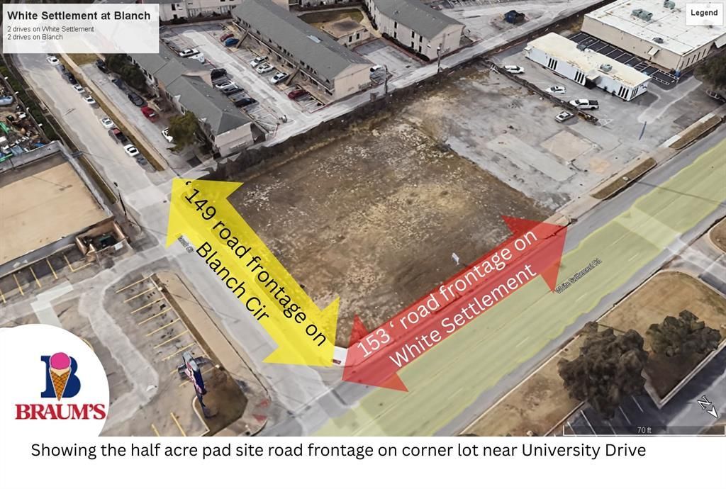 Prime location just minutes from Downtown Fort Worth, the Cultural District, and West 7th. Positioned on a high-visibility corridor with strong traffic counts, this site offers excellent accessibility and proximity to key commercial and residential developments. Surrounded by growth and opportunity. Zoned E commercial.Directly at University and White Settlement, the $1.7 billion Westside Village project is approved, bringing new office towers, retail, dining, a hotel, and nearly 1,800 multifamily units to the immediate area. City-led improvements to University Drive and West 7th will add landscaped medians, upgraded signals, pedestrian enhancements, and bike lanes, creating a safer and more connected corridor that strengthens retail and commercial visibility.Just north, the Panther Island Central City project continues to advance, unlocking major riverfront redevelopment opportunities and expanding the Trinity Trail system into the Cultural District. Together, these projects solidify this property’s position within one of Fort Worth’s fastest-growing corridors, offering long-term upside for retail, office, or mixed commercial use.