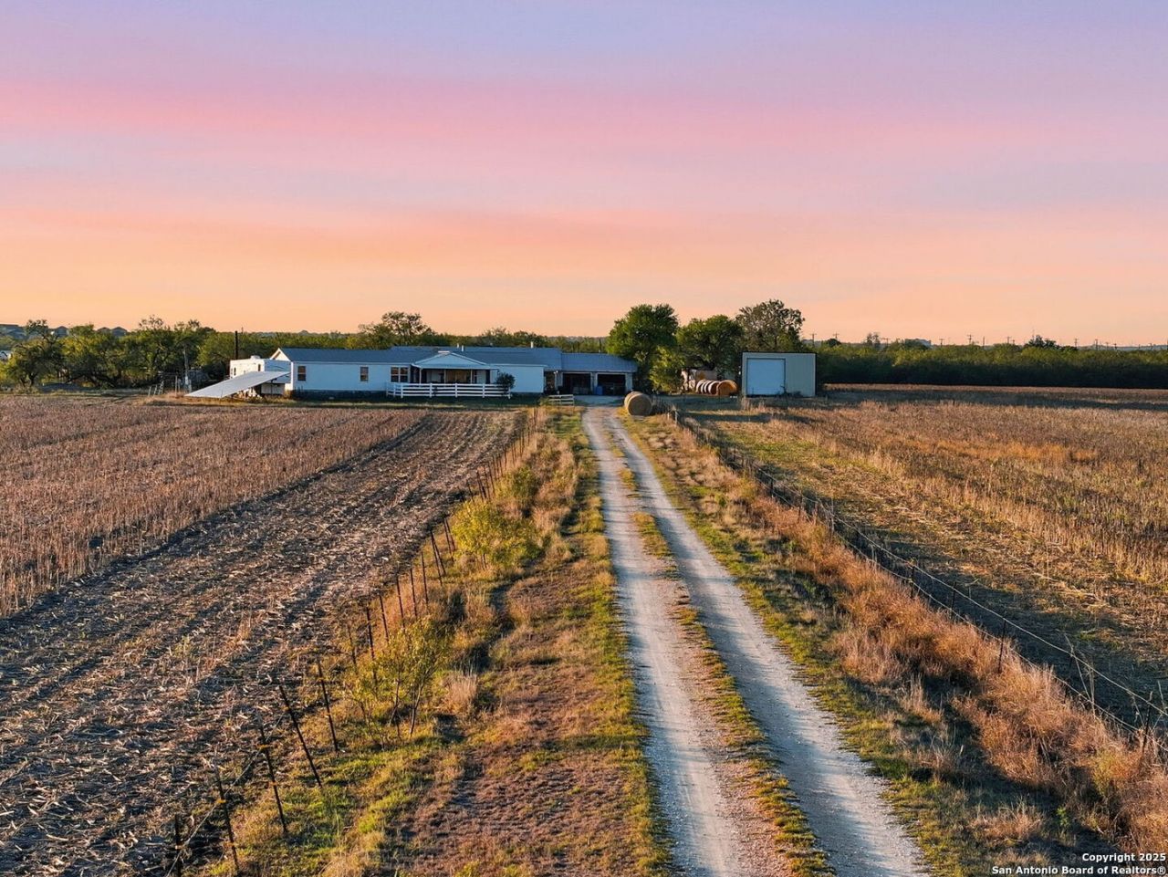 An exceptional 92.22 acre tract in the Greater San Antonio growth corridor offering a rare opportunity for investors, agricultural operators, or those seeking expansive land with long-term potential. The property features open pasture, mature trees, and natural water elements ideal for ranching, recreation, or future land investment. Located outside city limits (OCL) with an active agricultural valuation, it offers flexibility for various use options and potential future rezoning. Improvements include a small tank and multiple outbuildings, such as a 1,760 sq ft metal implement shed for tractors and equipment, open-face and enclosed hay barns, several sheds, and a carport. Two residences are located on-site: a 4-bedroom, 2.5 -bath manufactured home (2,128 sq. ft., built 2005) and an older 1940s home with restoration potential, providing space for on-site living or management. Livestock currently on the property may convey if purchased as a working farm or ranch. The tract includes portions within FEMA-designated floodplain, offering opportunities for natural open space, grazing, and water management within future land-use planning. The location offers rural privacy with convenient access to key destinations including Randolph Air Force Base, Joint Base San Antonio, and major employment corridors along I-10 and Loop 1604. Nearby amenities include retail and dining options in Converse, medical services at Methodist Hospital Northeast and Baptist Emergency Hospital, and a range of recreation such as golf courses, local parks, and walking trails. Served by East Central ISD with additional nearby private and charter school options. Whether envisioned as a working ranch, long-term investment, or future redevelopment opportunity, this versatile property combines size, accessibility, and enduring value within one of Bexar Countys most active and desirable growth areas.