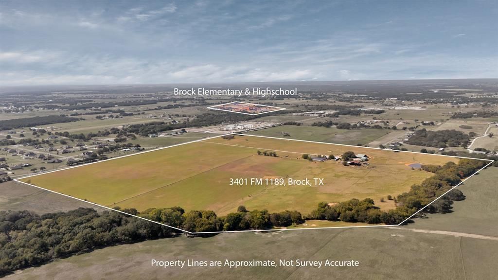 Situated in the highly desirable town of Brock, Texas, this stunning 110+ acre property offers endless potential for development, investment, or continued agricultural use. Currently zoned for agricultural purposes, the land boasts fertile coastal fields, making it ideal for farming or ranching. Patrick Creek runs along the northern edge of the property, adding to its scenic charm and potential for recreational use.A custom-built ranch-style home sits on the property, complemented by multiple barns and five water wells, ensuring a reliable water source for agricultural operations or future expansion. The property's prime location makes it a standout investment, positioned less than a 1 mile from Brock High School and 1.5 miles from Brock Elementary, offering incredible convenience for families and potential residential developers.Beyond its agricultural and residential possibilities, this property is an exceptional opportunity for commercial or mixed-use development. Its proximity to major urban centers—only 45 minutes to Dickies Arena in Fort Worth and 1 hour and 15 minutes to the DFW Metroplex—makes it an attractive option for developers looking to create a master-planned community, equestrian estate, or commercial hub.The aerial images showcase the vast, open landscape and incredible potential this land offers. Whether you're seeking a private ranch retreat, a high-value investment property, or prime land for large-scale development, this rare find in Brock, TX is an opportunity you don't want to miss!