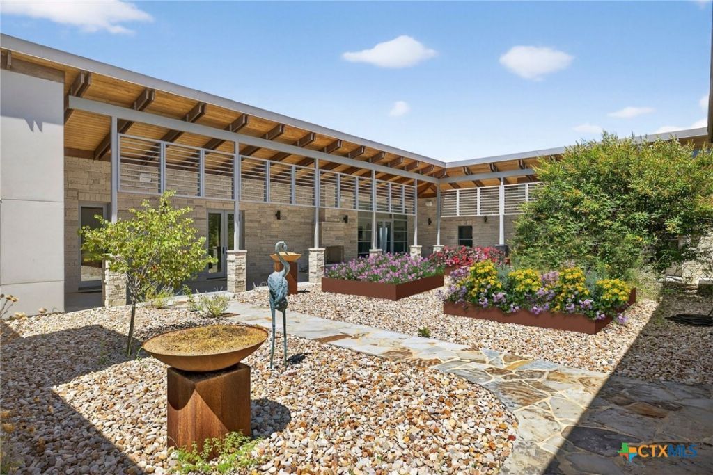 Welcome to 353 Agarita Way, an architectural masterpiece nestled on 5.87 acres in The Preserve at Walnut Springs. Set w/in a 2,000-acre sanctuary of rolling hills & wide-open spaces, this community offers an unmatched blend of privacy, luxury, & outdoor adventure. The custom-built 2,640 sqft modern estate blends bold contemporary lines w/ warm natural elements. Its sleek façade, stone accents, & clean rooflines set the tone for the design w/in. Inside, soaring beamed ceilings, walls of windows, & elegant finishes create an inviting, organic flow through the open living, dining, & kitchen area?featuring granite countertops, stainless appliances, & double ovens. A dramatic stone fireplace anchors the living room, opening to a serene courtyard w/ an outdoor fireplace, raised flower beds, & lush landscaping. The primary suite is a true sanctuary w/ vaulted ceilings, sweeping views, & a spa-like bath featuring a custom black granite vanity, free-standing tub, & glass shower. Two courtyard-access guest suites each offer private baths, while a media room, home office, & art studio provide versatile spaces for work or leisure. Functionality meets sustainability throughout the property w/ solar panels, well & advanced rainwater collection system that includes an 8,000-gallon storage tank w/ purification, & an owned security system. Additionally, enjoy an oversized 3-car garage & a climate-controlled workshop & storage room. Living at the Preserve at Walnut Springs offers access to top-tier amenities including a clubhouse, 2 pools, tennis courts, stocked fishing ponds, a spring-fed swimming hole, hunting access, & an equestrian center with stalls & covered arena. Residents also benefit from a full-time concierge service. Located 8 miles outside of Johnson City and only an hour from both Austin & San Antonio, this property offers the rare opportunity to experience the perfect balance of modern luxury, Hill Country charm, & an unparalleled sense of community.