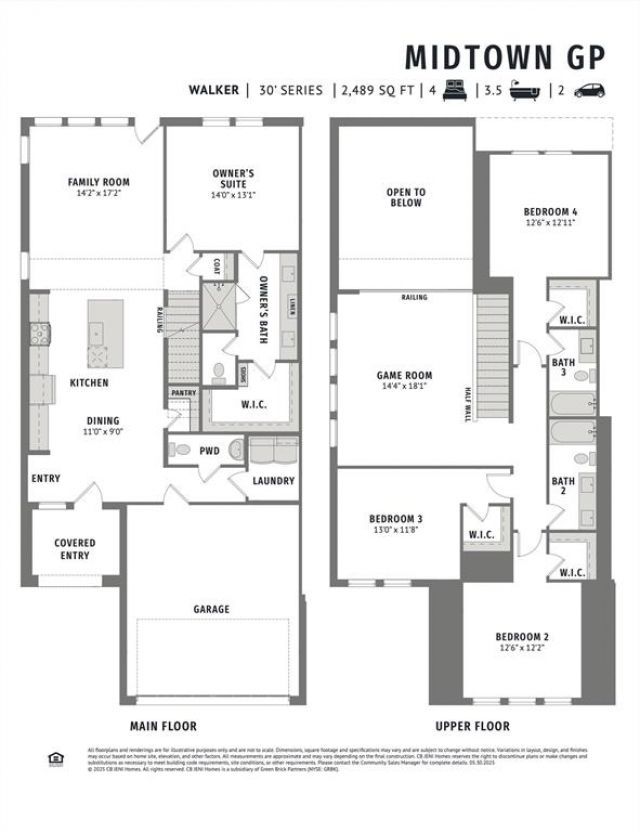 CB JENI HOMES WALKER floor plan. This exceptional WALKER end-unit floor plan offers 4 bedrooms, 3.5 baths, and a highly sought-after downstairs primary suite. Designed with both style and functionality in mind, the home features a dramatic vaulted ceiling in the living room and an abundance of windows that flood the space with natural light, creating an open and inviting atmosphere.The main level showcases beautiful hard-surface flooring, an expansive living area, and a gourmet kitchen ideal for entertaining. The kitchen is highlighted by a large island, elegant quartz countertops, stainless steel appliances, a gas range, and exterior venting.The primary suite on the main level provides a private retreat, complete with a sophisticated ensuite bathroom featuring dual vanities, a spacious walk-in shower, and an oversized walk-in closet.Upstairs, enjoy a generous game room along with three guest bedrooms, all offering walk-in closets. One guest bedroom features a private ensuite bath, providing added comfort and flexibility for guests or family members.Step outside to a fenced backyard with an oversized patio, perfect for outdoor entertaining or relaxing. With an impressive array of upgrades and thoughtful design elements throughout, this home offers exceptional comfort, elegance, and versatility. MOVE IN READY NOW!
