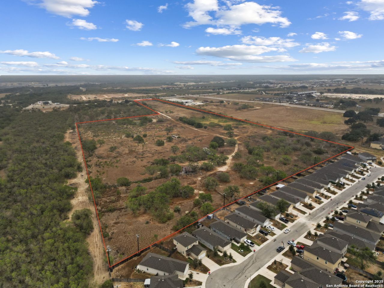 Prime 40-acre property with exceptional potential along S Loop 1604! The front portion is zoned C-2, offering ideal opportunities for commercial or retail development, while the back portion is zoned R-4 for residential use-perfect for a mixed-use project or future subdivision. City utilities are nearby, with city sewer conveniently available at the street frontage. The sewer line runs along the access road in front of the property, ready for easy future connection. Excellent visibility and accessibility make this a standout investment opportunity in a rapidly growing area of San Antonio!